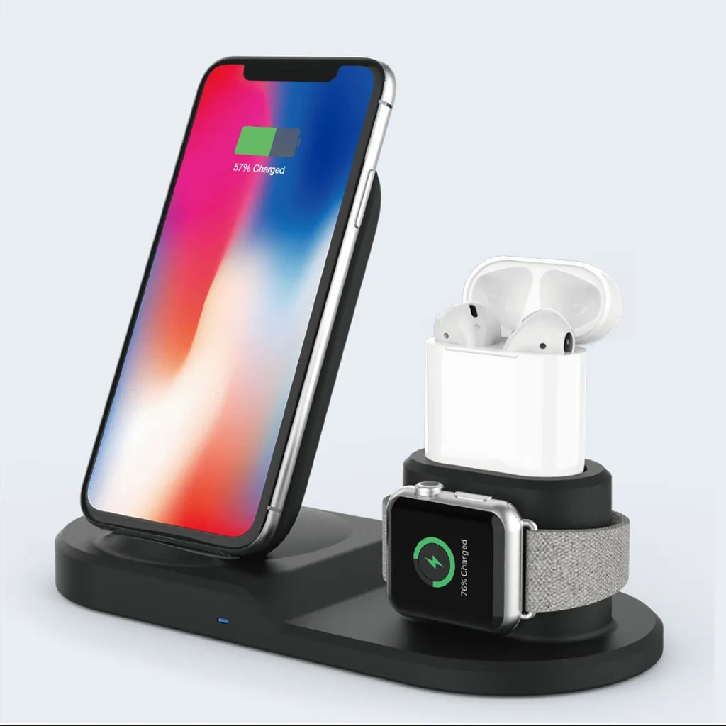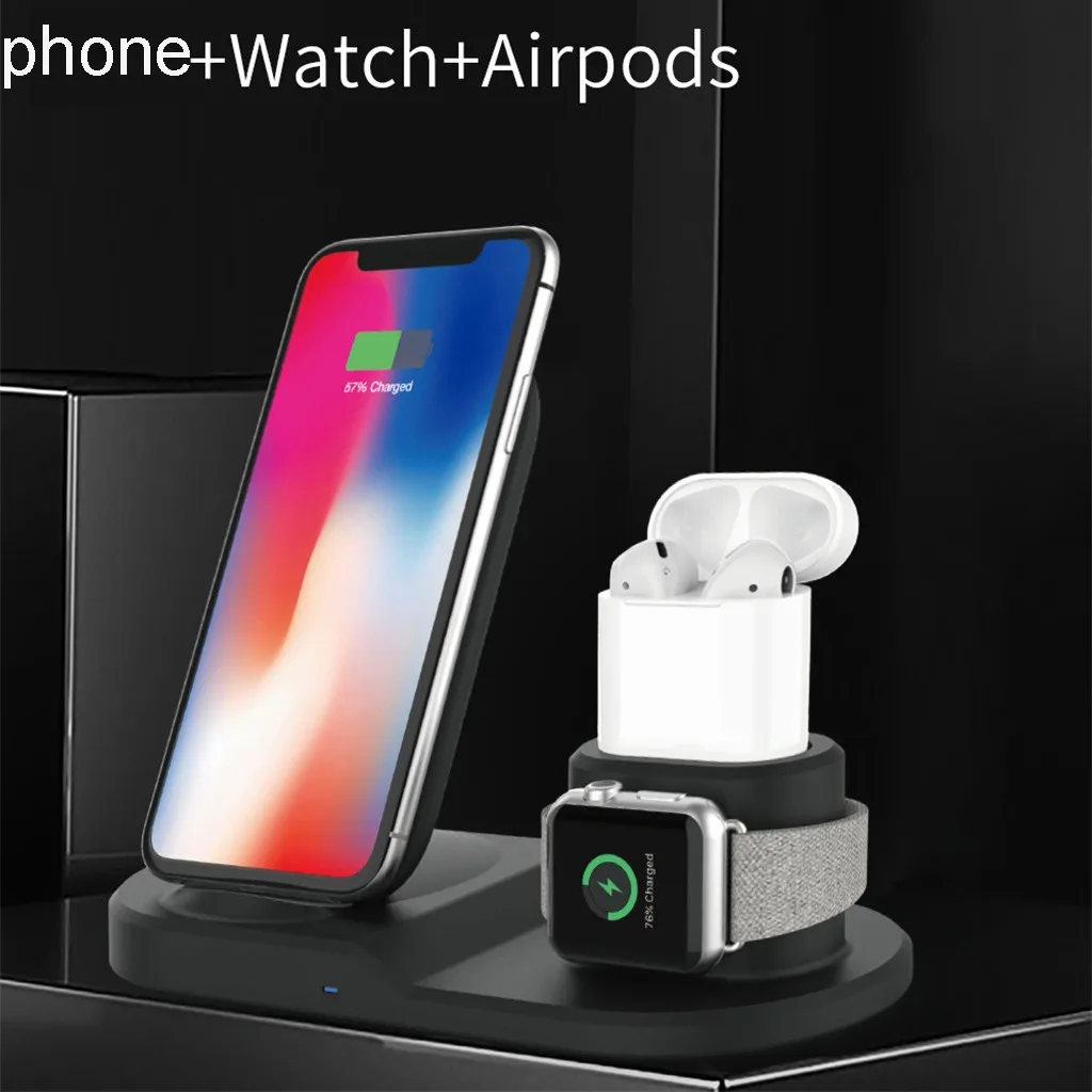 15 Вт Быстрое беспроводное зарядное устройство док-станция для AirPods Быстрая зарядка для iPhone 11 Pro XR 7/8 Plus для iWatch 2 3 4 для Samsung S10