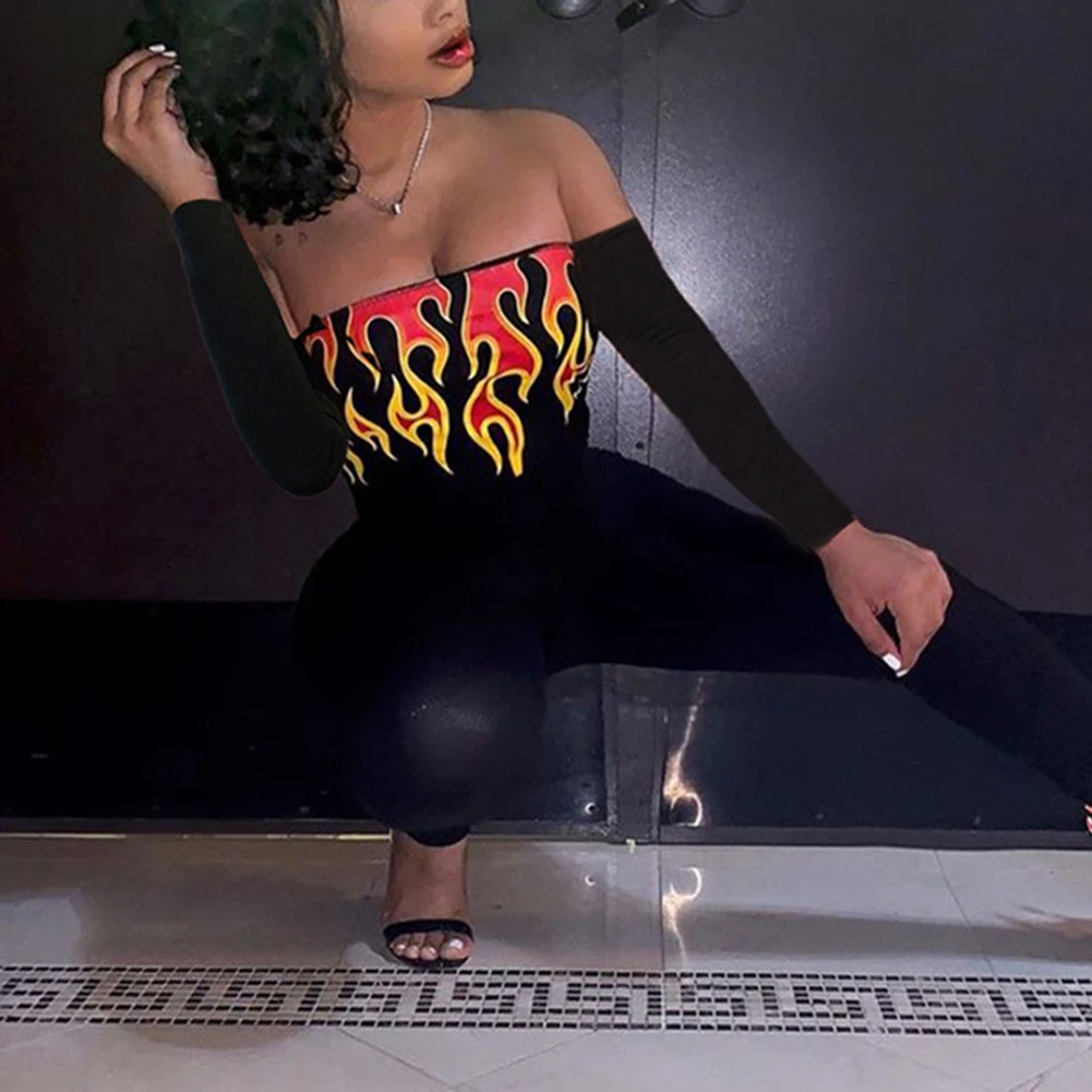 -С открытыми плечами, с длинным рукавом, облегающие комбинезоны с рюшами и разрезом спереди