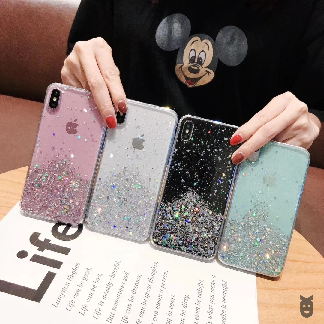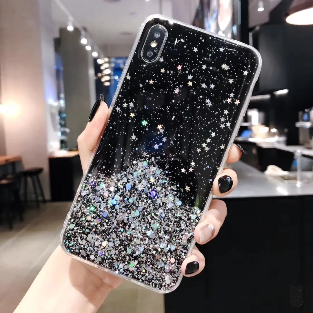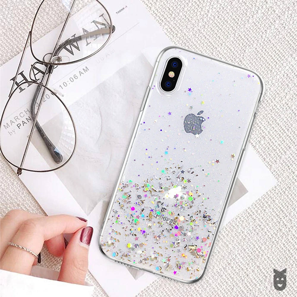 Блестящий блестящий чехол с блестками для Apple iPhone 11 Pro XS MAX X XR 8 7 6 6s Plus, золотой фольгой, звездами, мягкий прозрачный чехол из ТПУ, оболочка