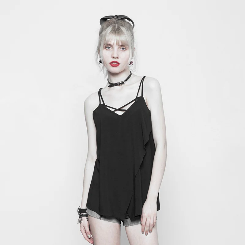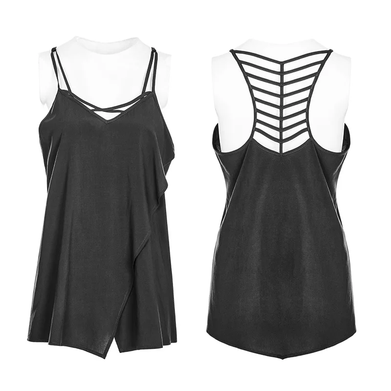 Жилет с двумя ремешками в стиле панк с линейным дизайном
