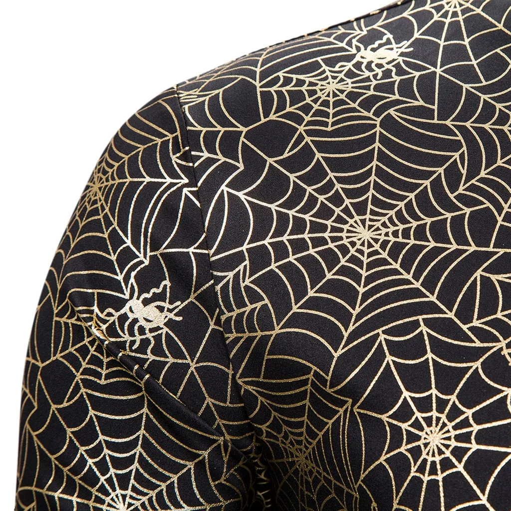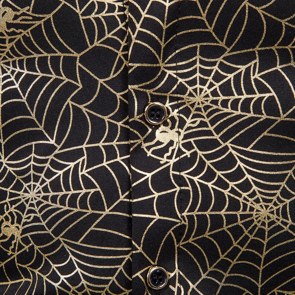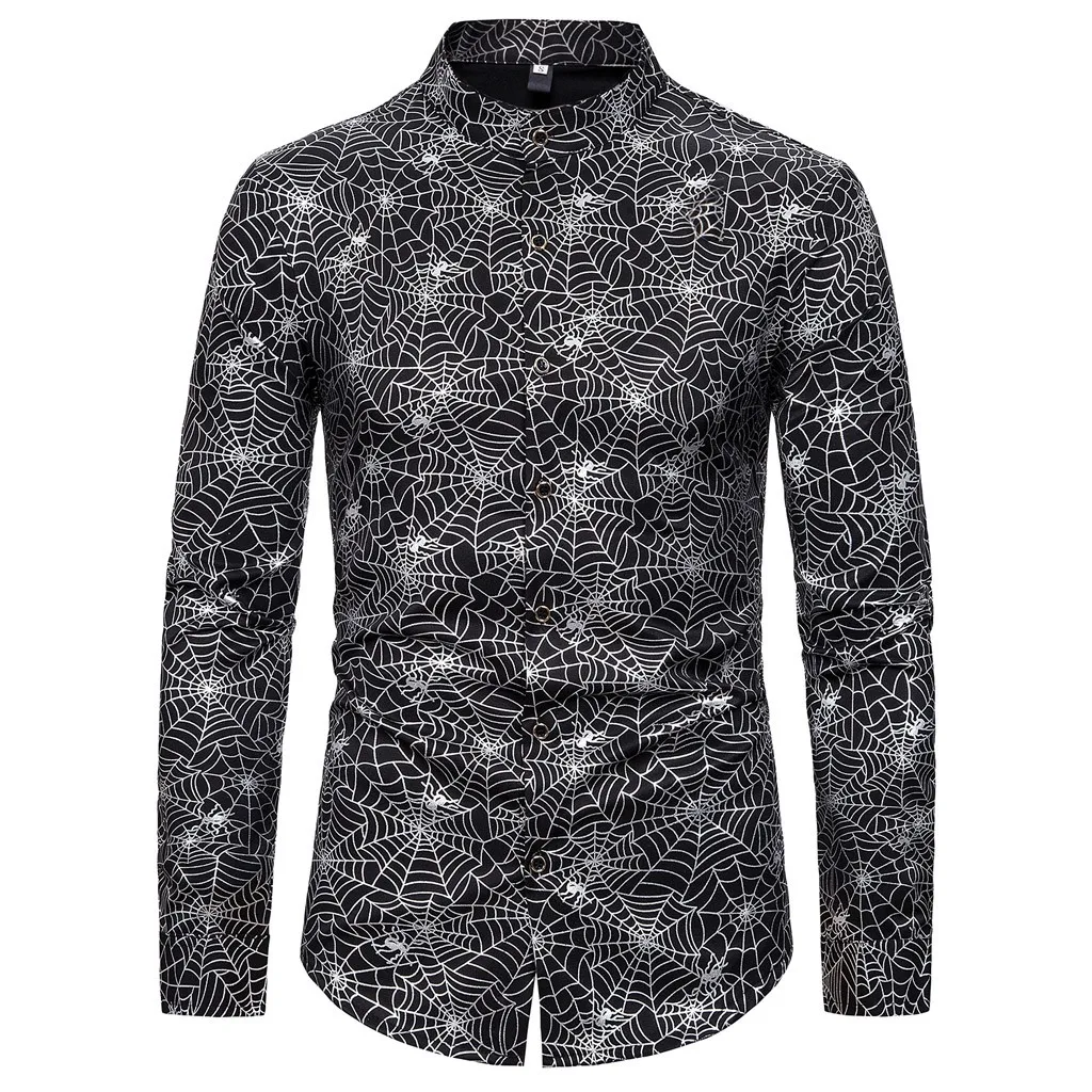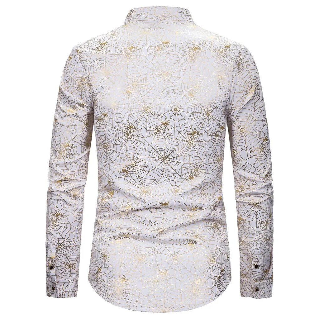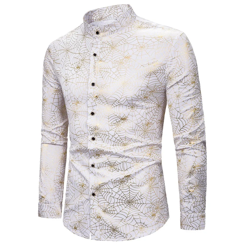 Joycosin 2019 Новая зимняя мужская рубашка Повседневная модная паутина Золотая оправа мужские рубашки с длинным рукавом стоячий воротник облегающие мужские топы