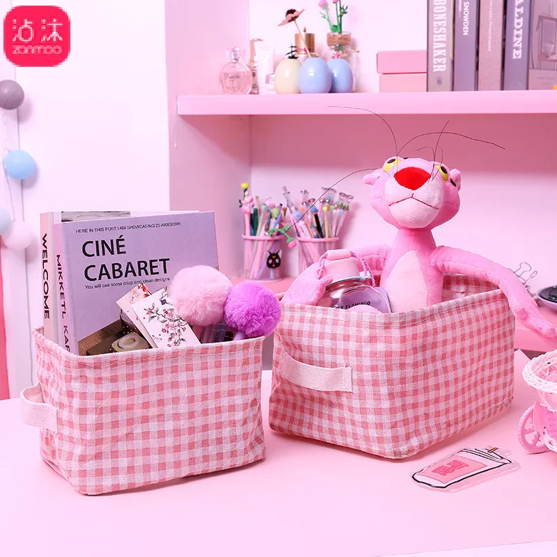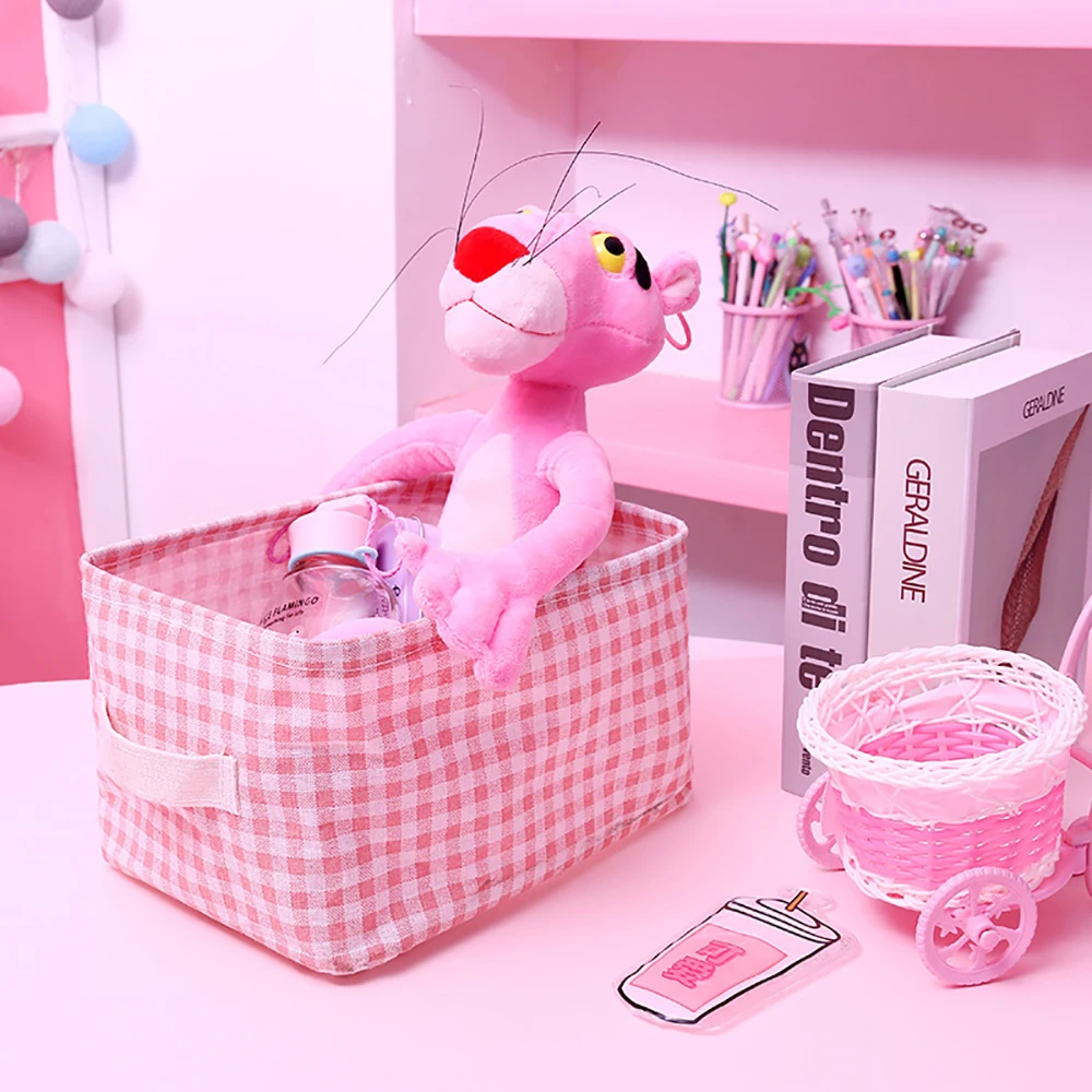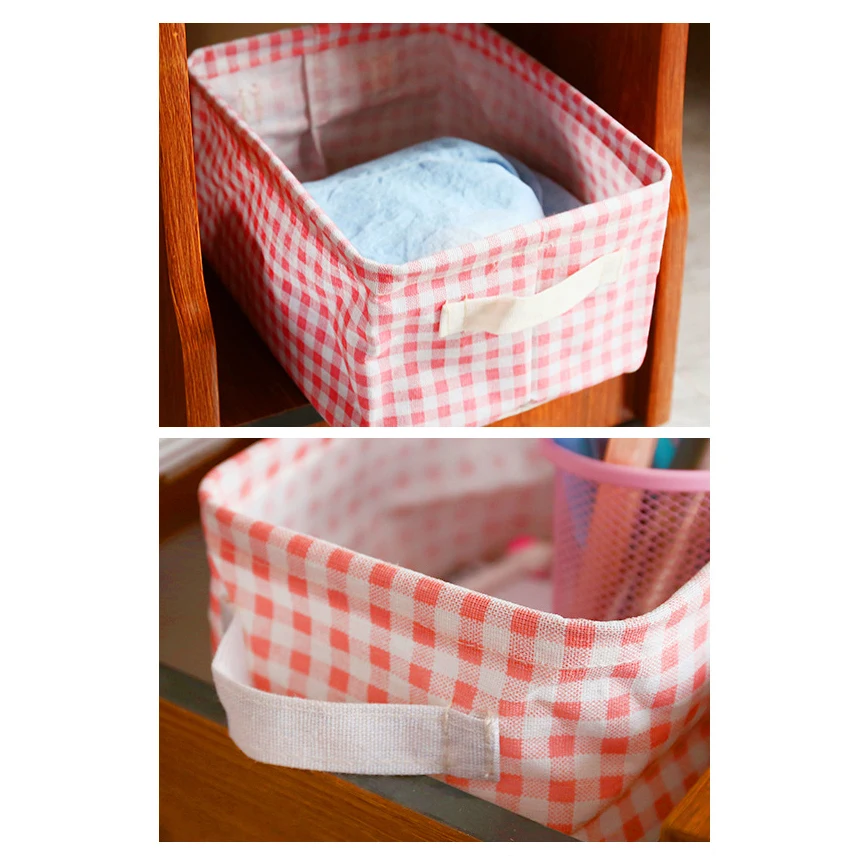 Saim корзина для хранения мелочей милая розовая клетчатая игрушка корзина из хлопка и льна коробка для хранения настольный шкаф многофункциональный органайзер JJ50686