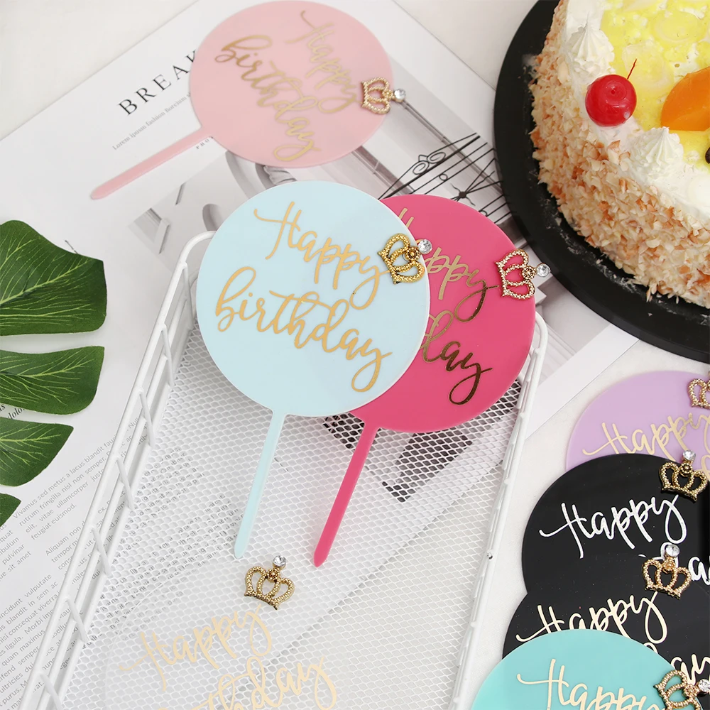 Новое золочение акриловые круглые Корона Топпер для торта «С Днем Рождения» «King», «Queen» «Prince» и «Princess» Королевский тема торт украшения вечерние поставки