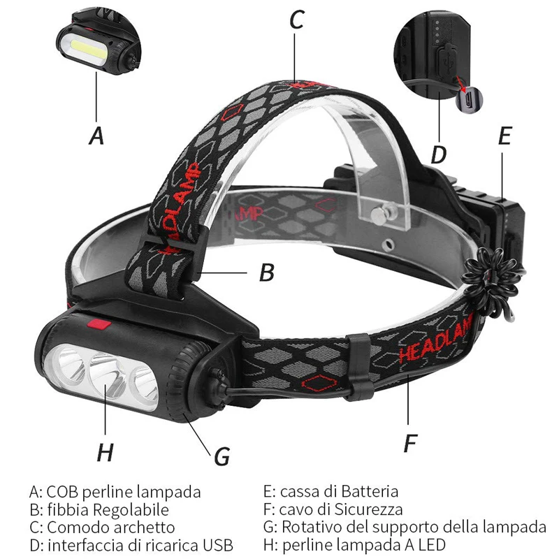 Тип лампы: двухсторонний светильник (одна сторона (XPE зеленый + T6 + XPE красный светильник) + (одна сторона COB)