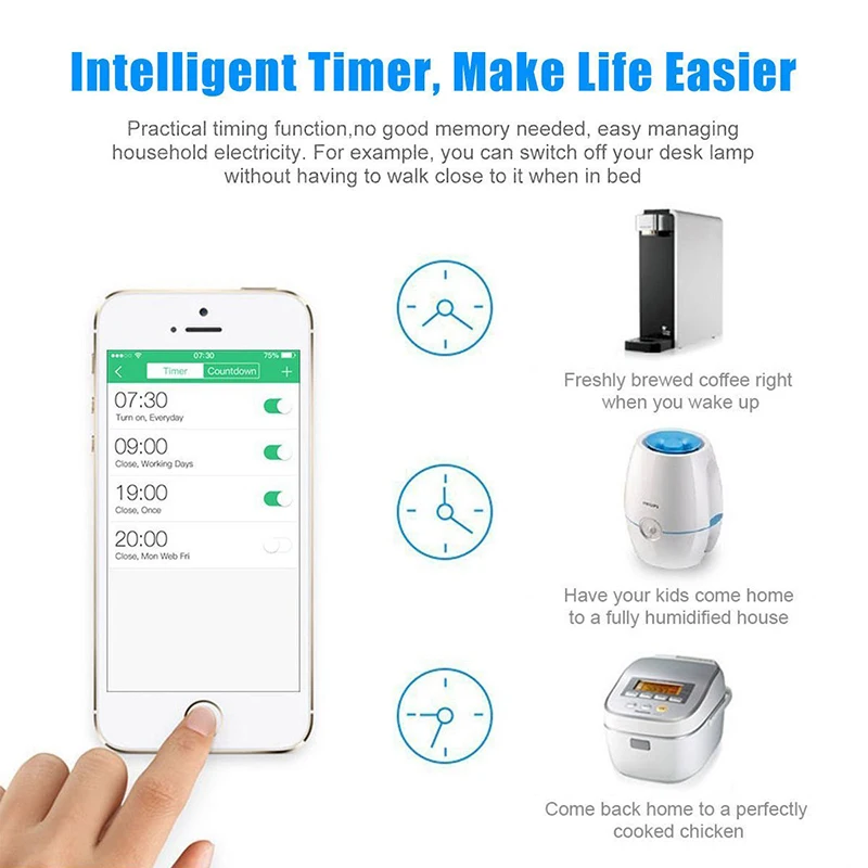Поддержка голосового управления: Этот смарт-разъем отлично работает с Amazon Echo, Google Home, IFTTT, TmallGenie и т. д. так удобно управлять устройствами во время укладки на кровать.