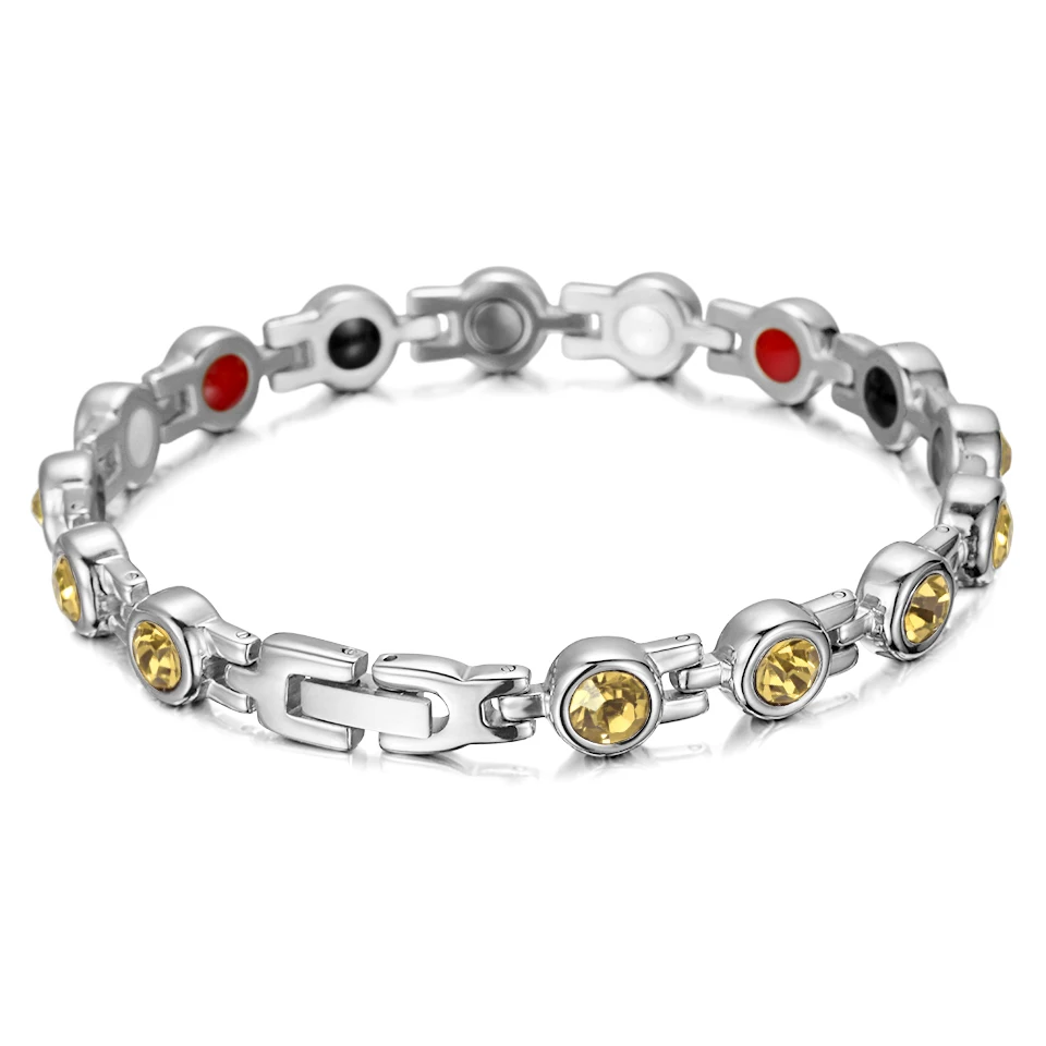 Браслет из нержавеющей стали RainSo, серебристо-голубой Шарм, дружба, магнитные браслеты для женщин, терапия, 4 в 1, элементы здоровья, браслет для любви