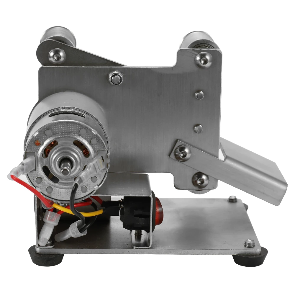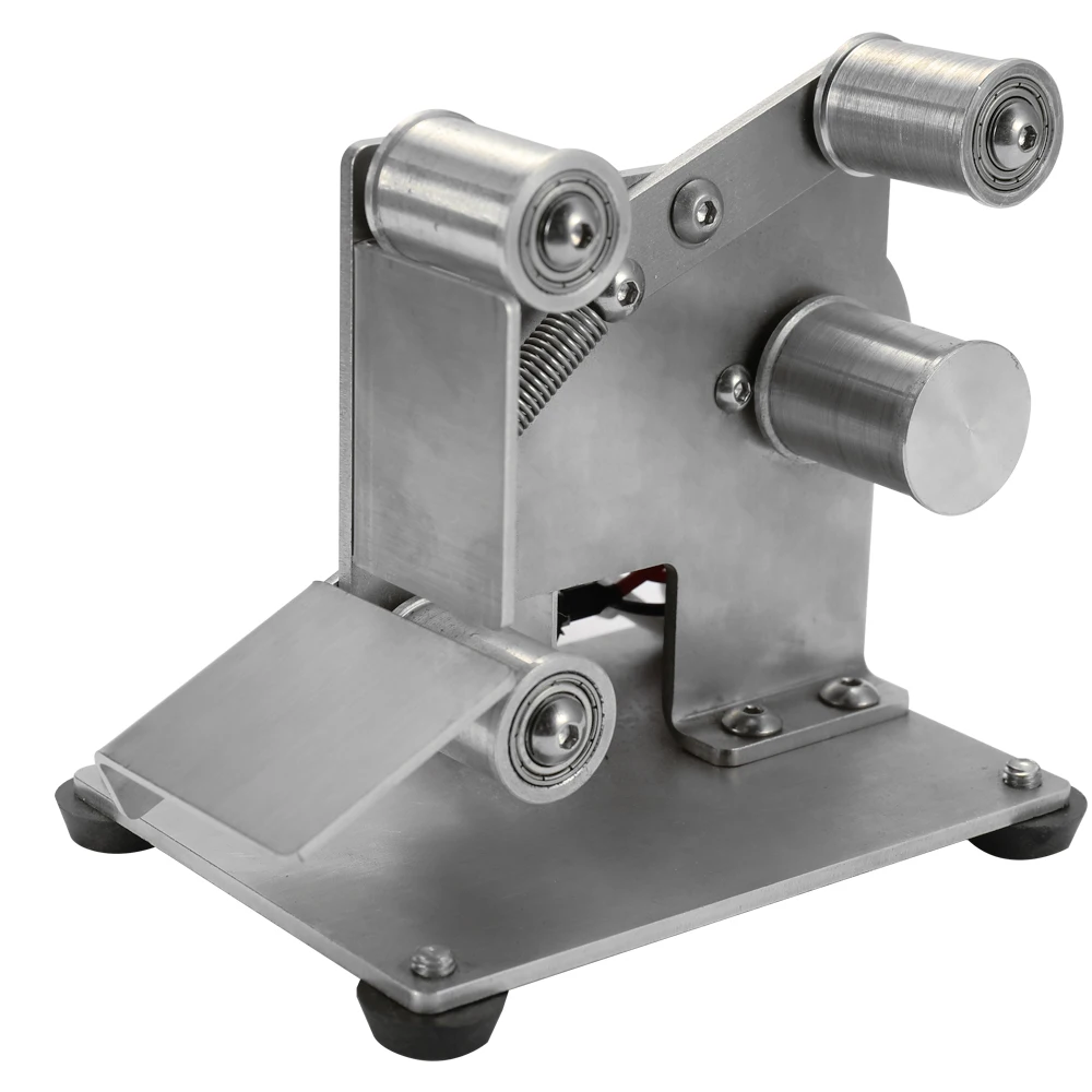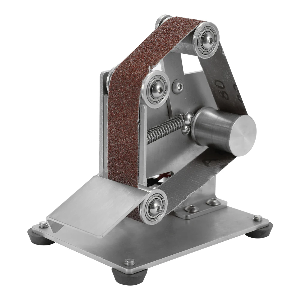 Это многофункциональный ленточный шлифовальный станок, мини портативный, низкий уровень шума, может использоваться для высокоскоростного стального сверла грубого шлифования, кромки лезвия, тонкого шлифования вольфрамовой стали токарного инструмента, полировки корень дерева Бодхи и т. Д., простой в установке и эксплуатации, это домашний инструмент DIY.