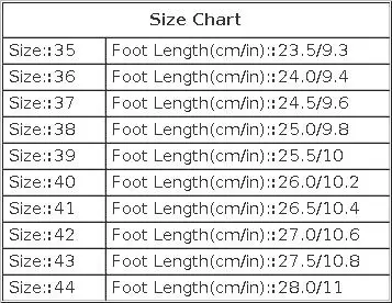 35: 23,5 см 36: 24,0 см 37: 24,5 см 38: 25,0 см 39: 25,5 см 40: 26,0 см 41: 26,5 см 42: 27,0 см 43: 27,5 см 44: 28,0 см