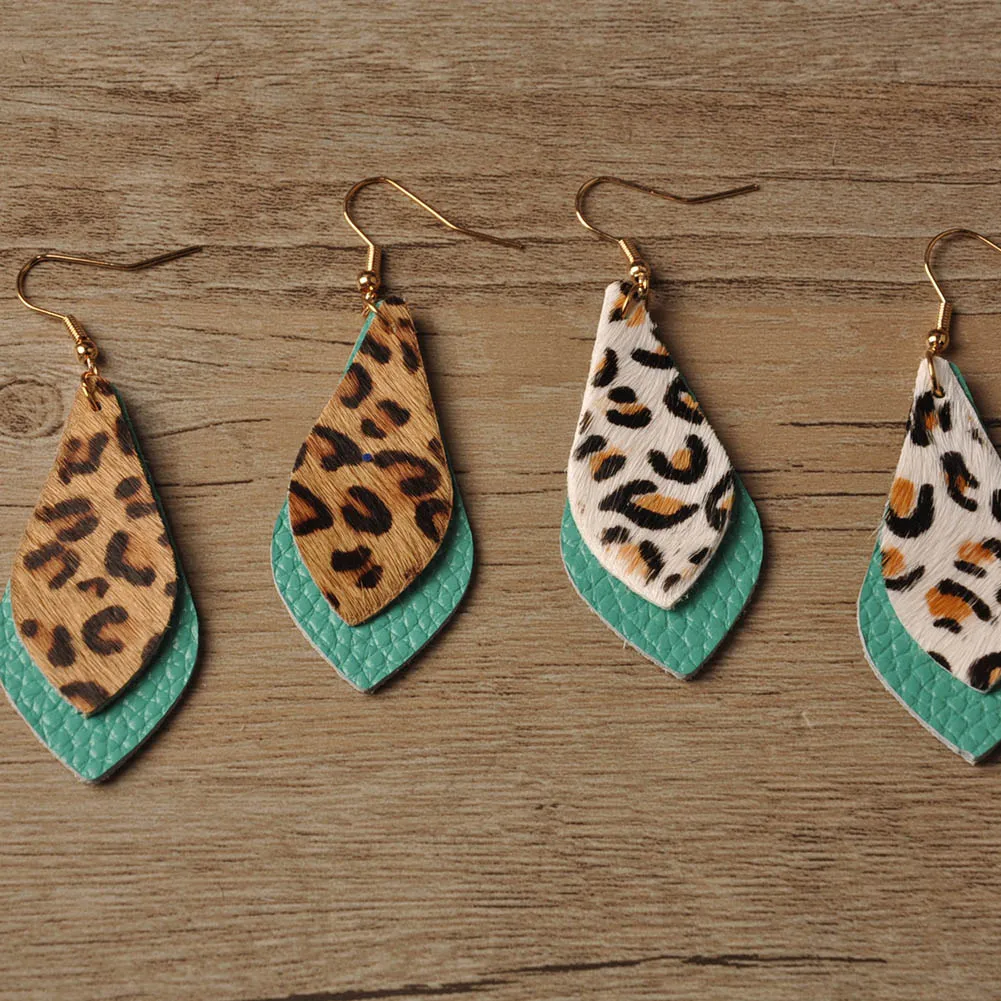 Леопардовые серьги для женщин, модные серьги из натуральной кожи, зимние висячие серьги