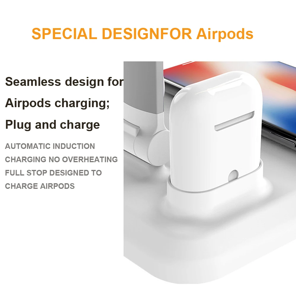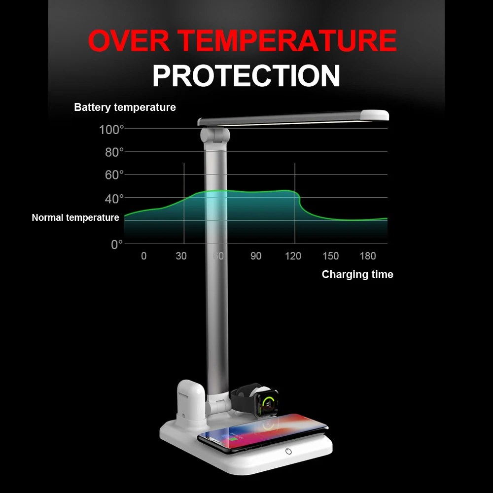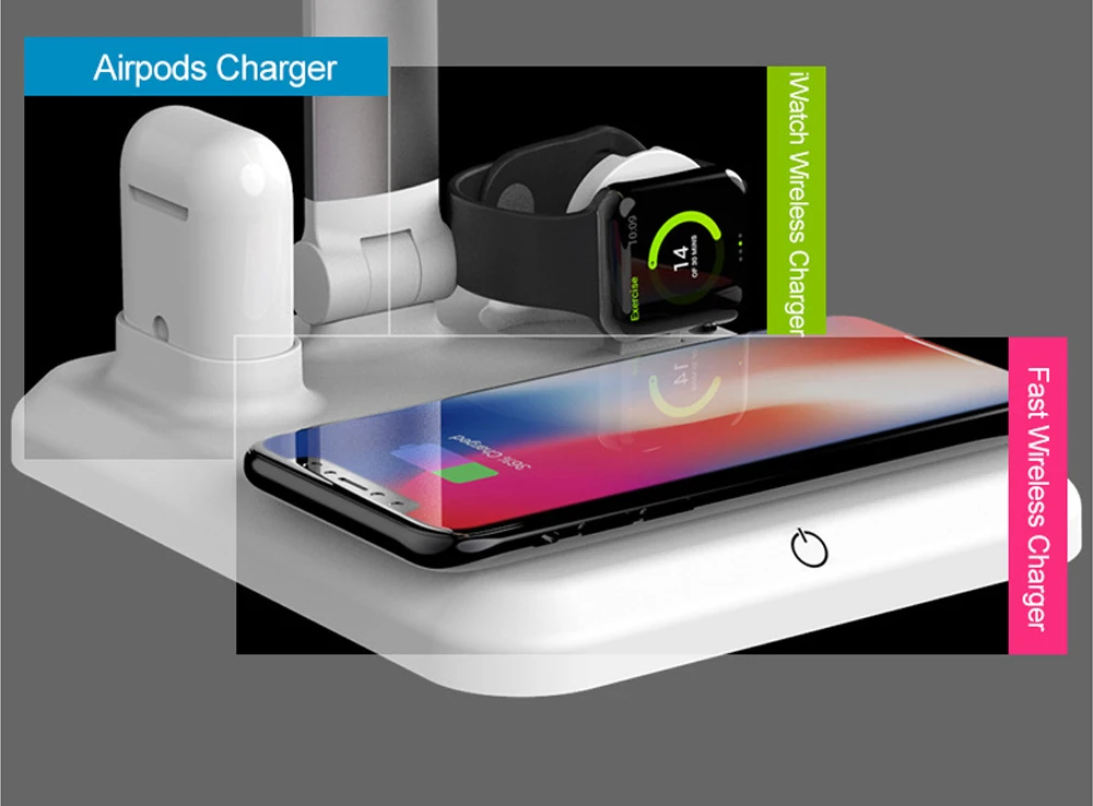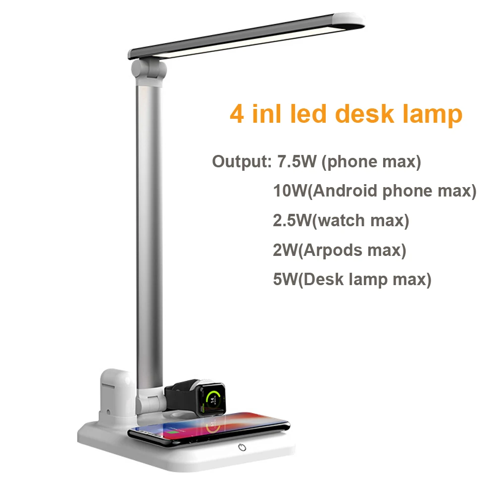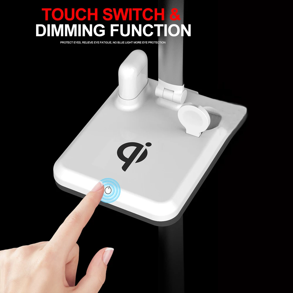 5 Вт настольная лампа 4 в 1 Многофункциональное Беспроводное зарядное устройство для Iphone iwatch и Airpods сенсорная настольная лампа для чтения