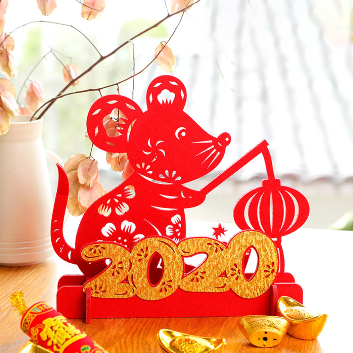 Behogar DIY Китайский новогодний стол с красной крысой, украшение для стола, Весенний фестиваль мышей, украшения для дома и офиса