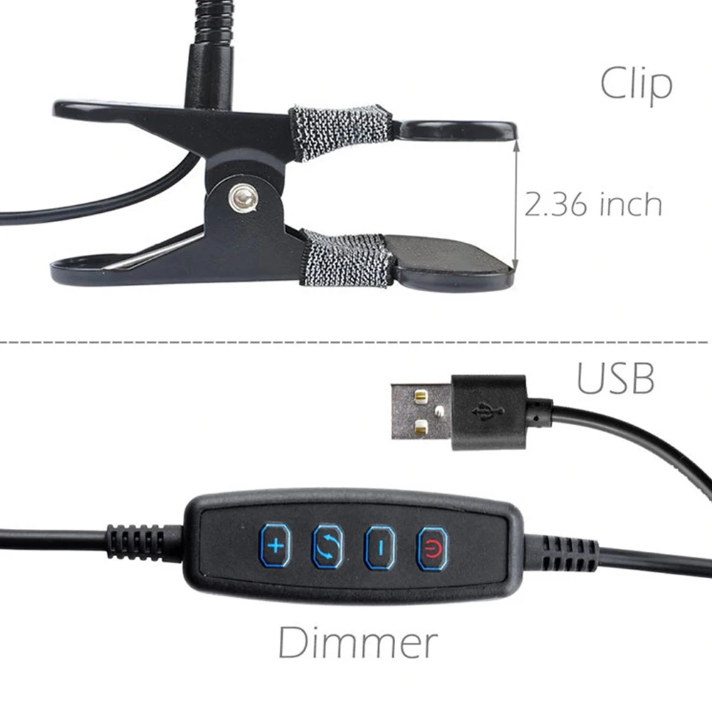 Светодиодный портативный Настольный светильник с зажимом USB Перезаряжаемый с затемнением Настольный светильник идеально подходит для ночных татуировок бровей ногтей красоты детей чтения