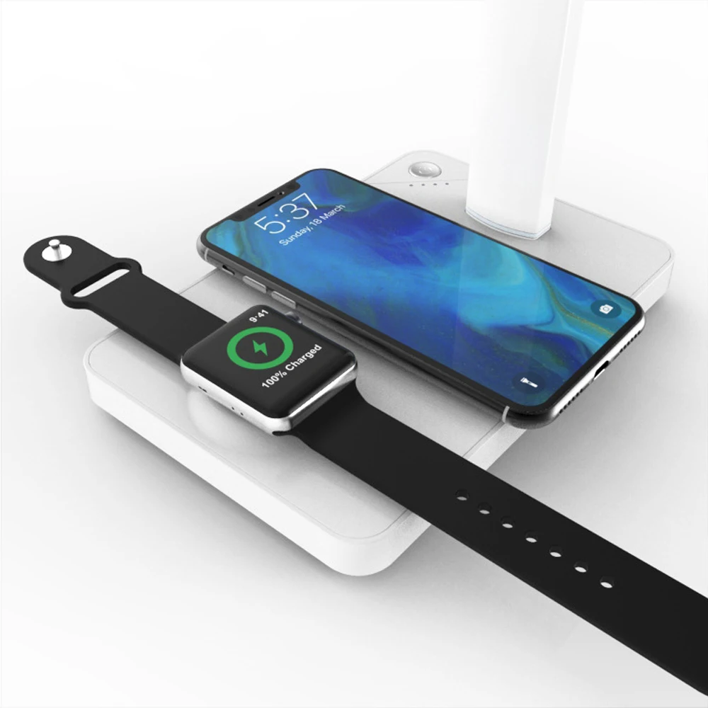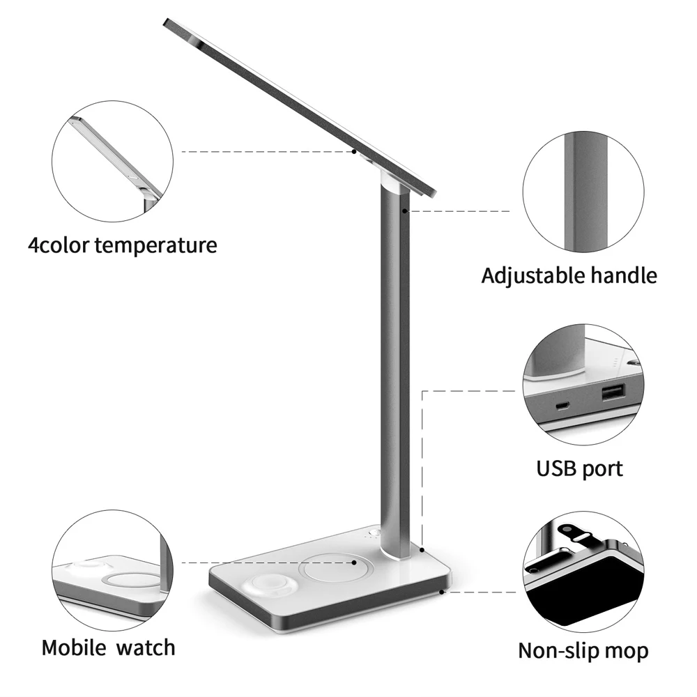 Светодиодная настольная лампа Беспроводная зарядка защита глаз ночник для iPhone Watch 5 Вт зарядка вращение на 180 градусов Настольная лампа для чтения