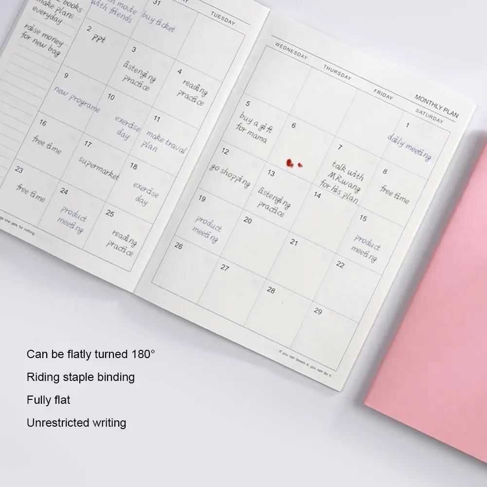 1. Высокое качество: Бумага Толстая и мягкая по цвету, не проникает легко. Он может быть полностью повернут на 180 °. Письменной форме не ограничено.1 * месячный планировщик