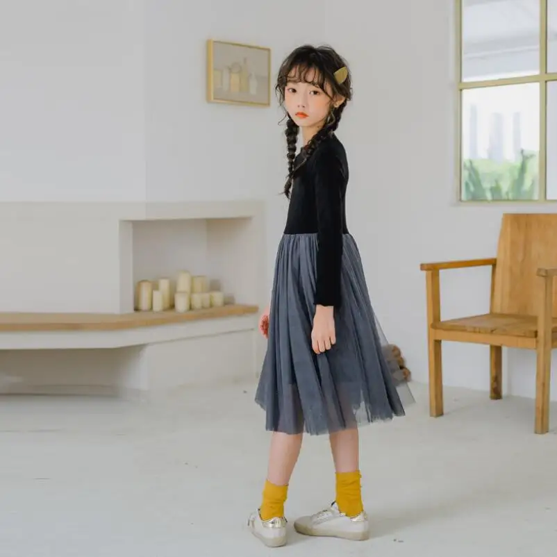 От 3 до 12 лет; Теплое платье принцессы для девочек; Сезон зима-весна-осень; Черные вечерние платья с длинными рукавами для детей; Детская одежда для маленьких девочек-подростков