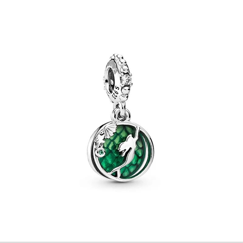 Новинка 2019, настоящая серебряные бусины 925 пробы подвеска, кристалл, Шарм Ариэль, Русалка, Подходит для Pandora, браслеты, ожерелья для женщин, сделай сам, ювелирные изделия