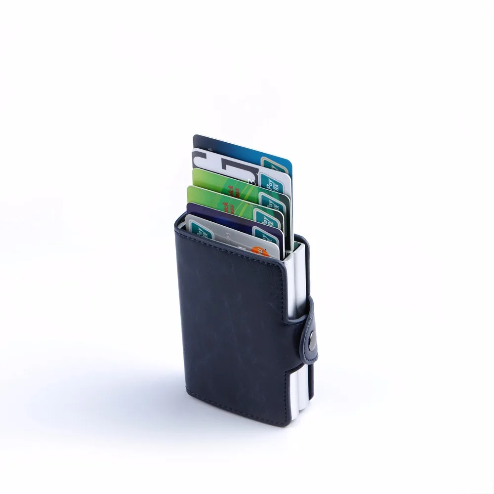 2019 мужской и женский бизнес кредитный держатель для карт металлический RFID двойной Алюминиевый футляр Crazy Horse кожаный кошелек для путешествий
