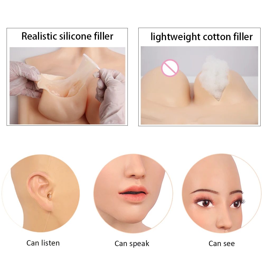 Изготовлен из высококачественного медицинского силикона, безопасен для ношения и более эластичен, кожа мягкая и настоящая на ощупь, широко используется для мужчин, одетых как женщины и на перекрестных вечеринках, учения, живописи, реквизит для фотосъемки и так далее.
