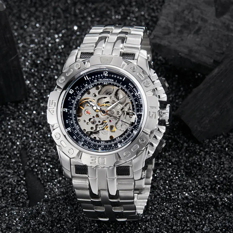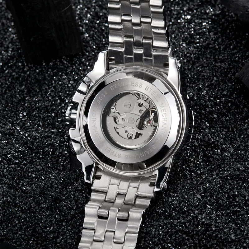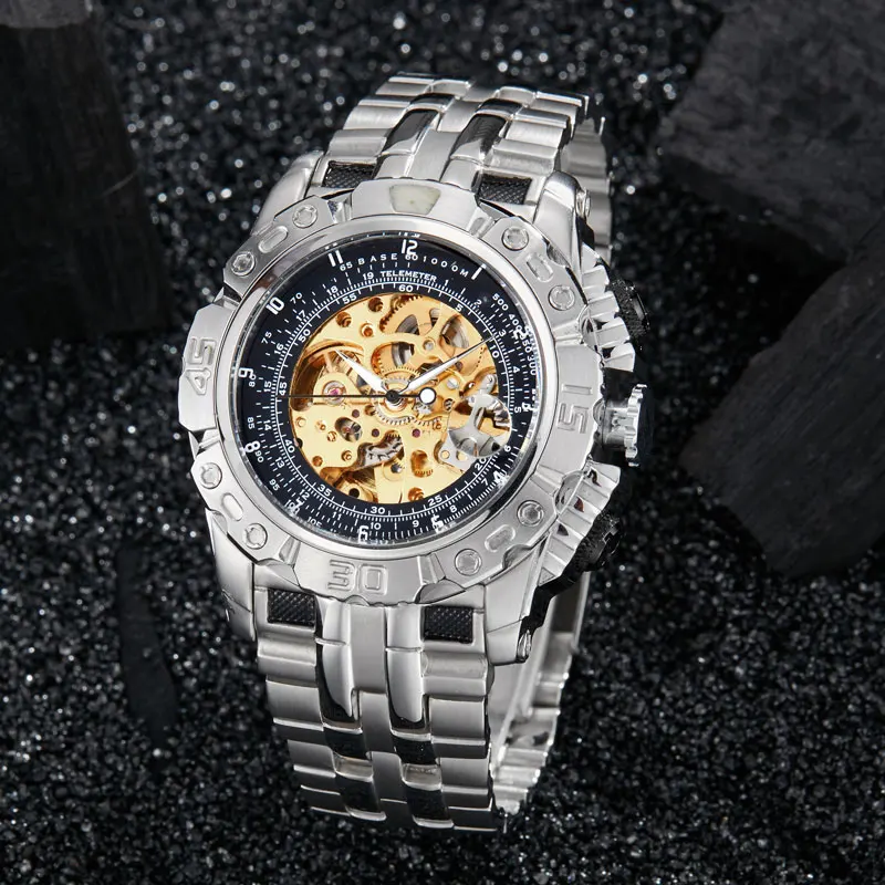Высокое качество роскошные серебряные золотые автоматические механические часы мужские полностью Стальные наручные часы со скелетом мужской большой циферблат Relogio Masculino