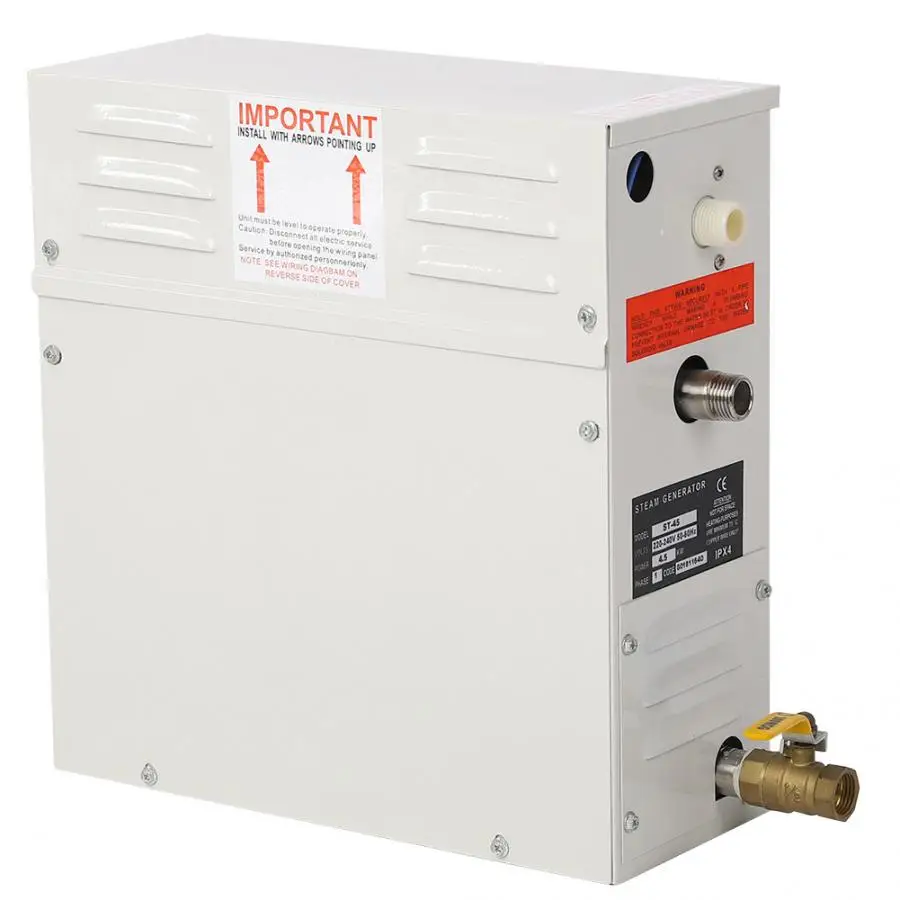 1. Парогенератор может быть установлен на стене или земле, но он должен быть твердым. Парогенератор должен быть установлен как можно ближе к ванне или ванной. Закрепите машину на вертикальной стене. Сначала ослабьте два винта на крышку ботинка и снимите внешнюю крышку. Есть отверстие в верхней левой и верхней правой части крышки машины для крепления машины на стене. Накройте внешнюю крышку после фиксации. Чтобы обеспечить хорошее обслуживание, вывески должны быть видны и машина установлена в удобном месте для обслуживания.