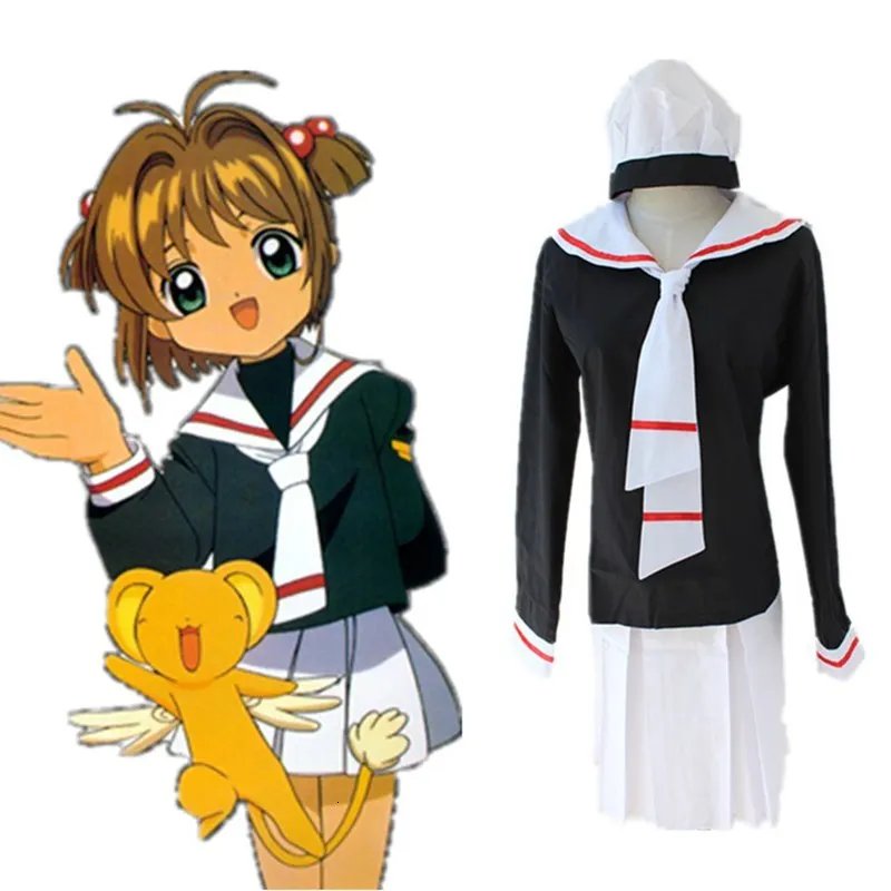 Новинка; Костюм Sakura Kinomoto Sakura Li Syaoran; Школьная форма; Платье; Плащ, костюм для косплея