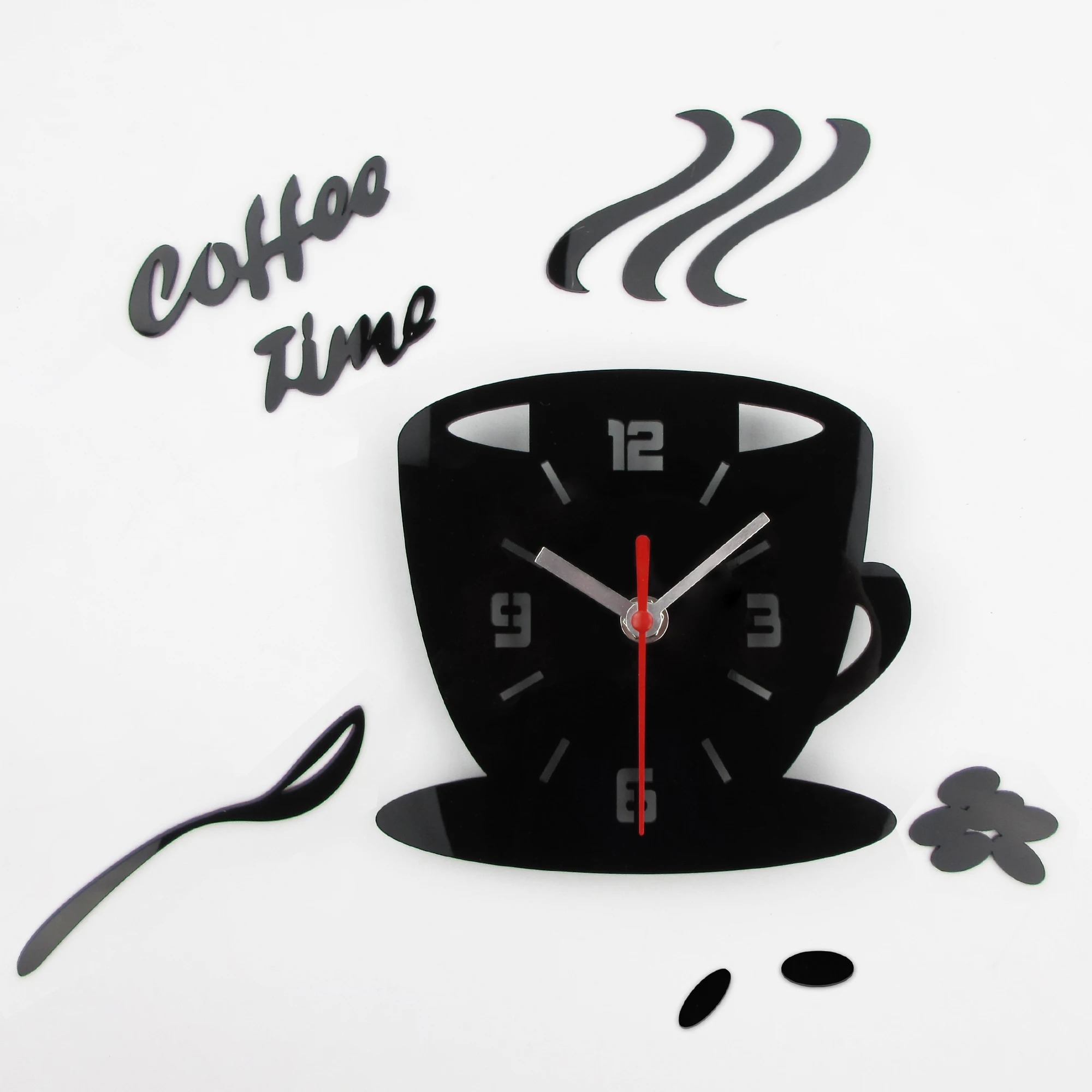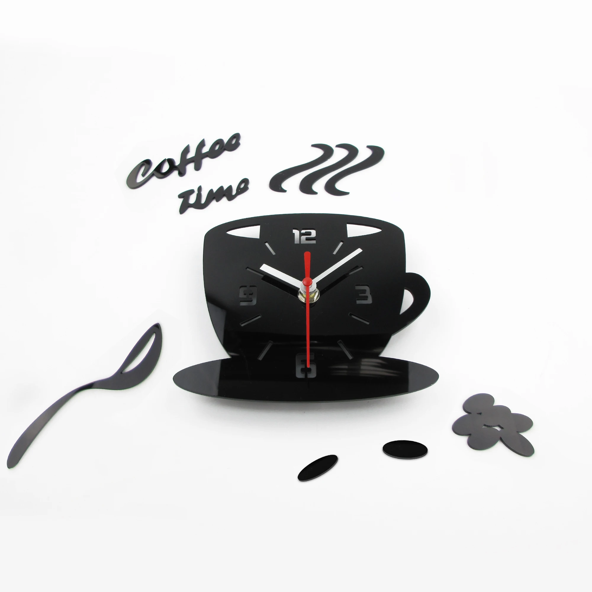 Креативные 3D DIY акриловые настенные часы современный кухонный домашний декор кофейные часы форма чашки цифровые настенные часы Наклейка полые цифры