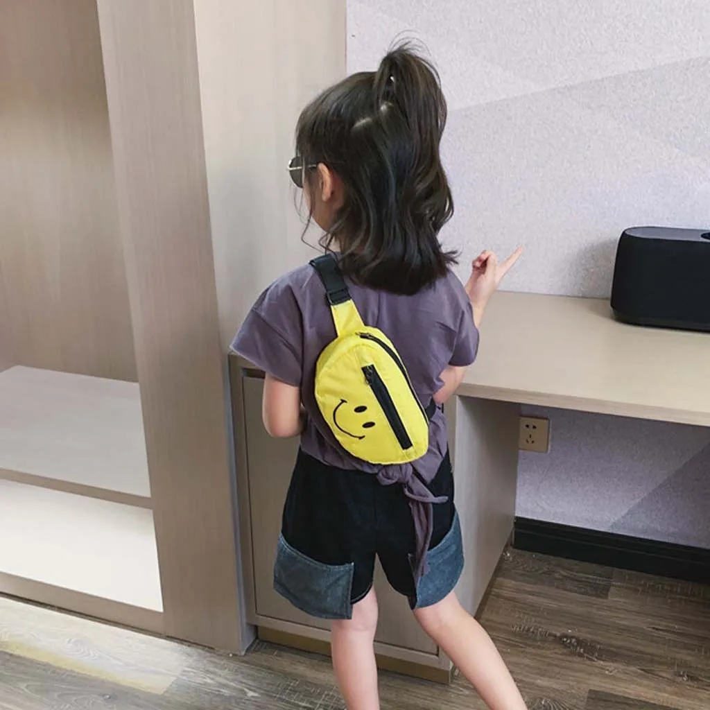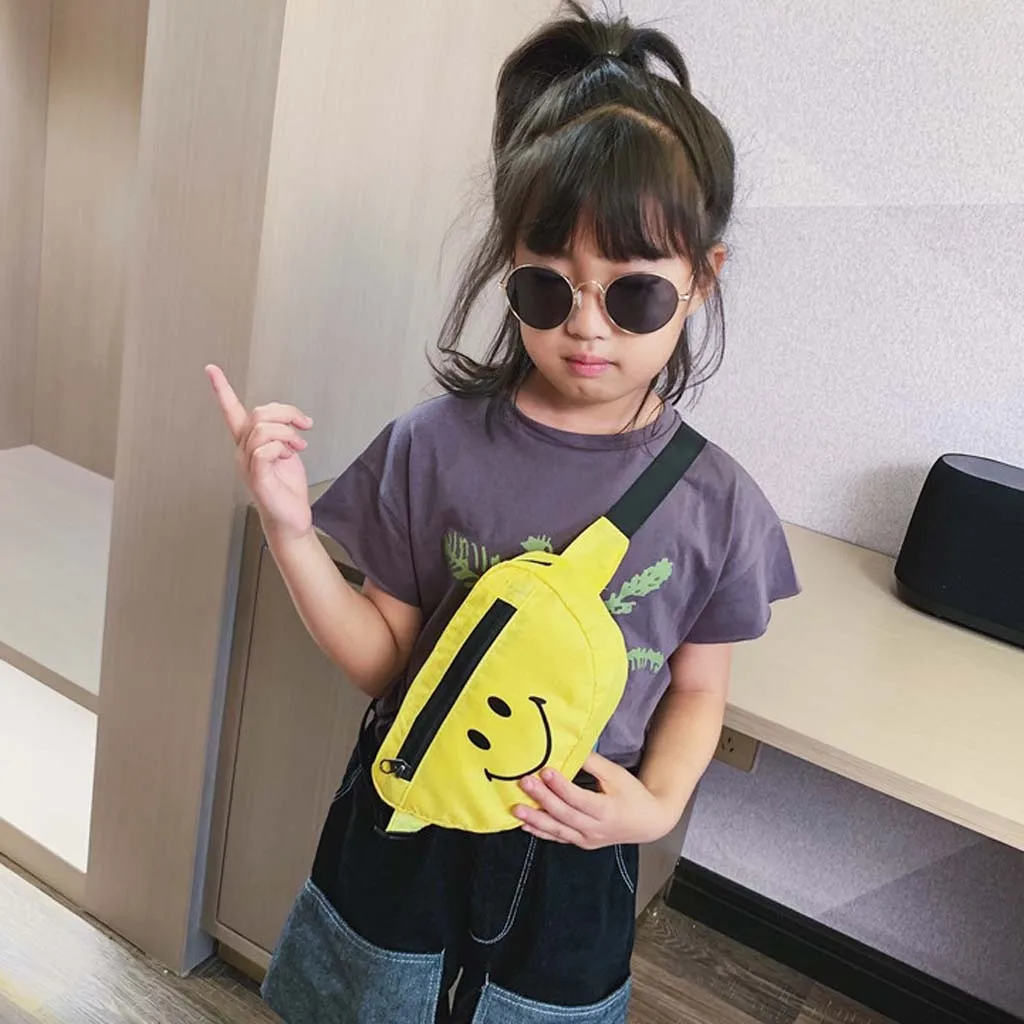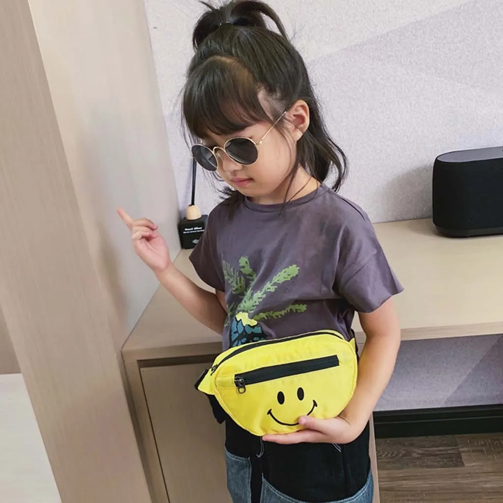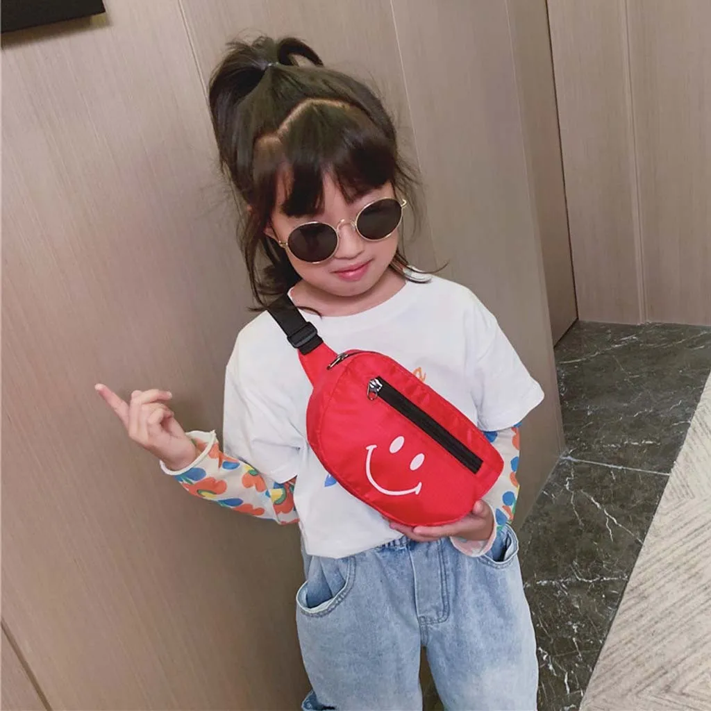 Детская одеждаСумка-мессенджер на плечо с улыбающимся лицом для девочек; Модная нагрудная сумка; Светильник с карманами