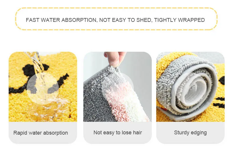 Cute Cartoon Floor Mats Home Door Mats Bedroom Living Room Bathroom Floor Mats Lint-Free Absorbent Thick Cotton Velvet Mats