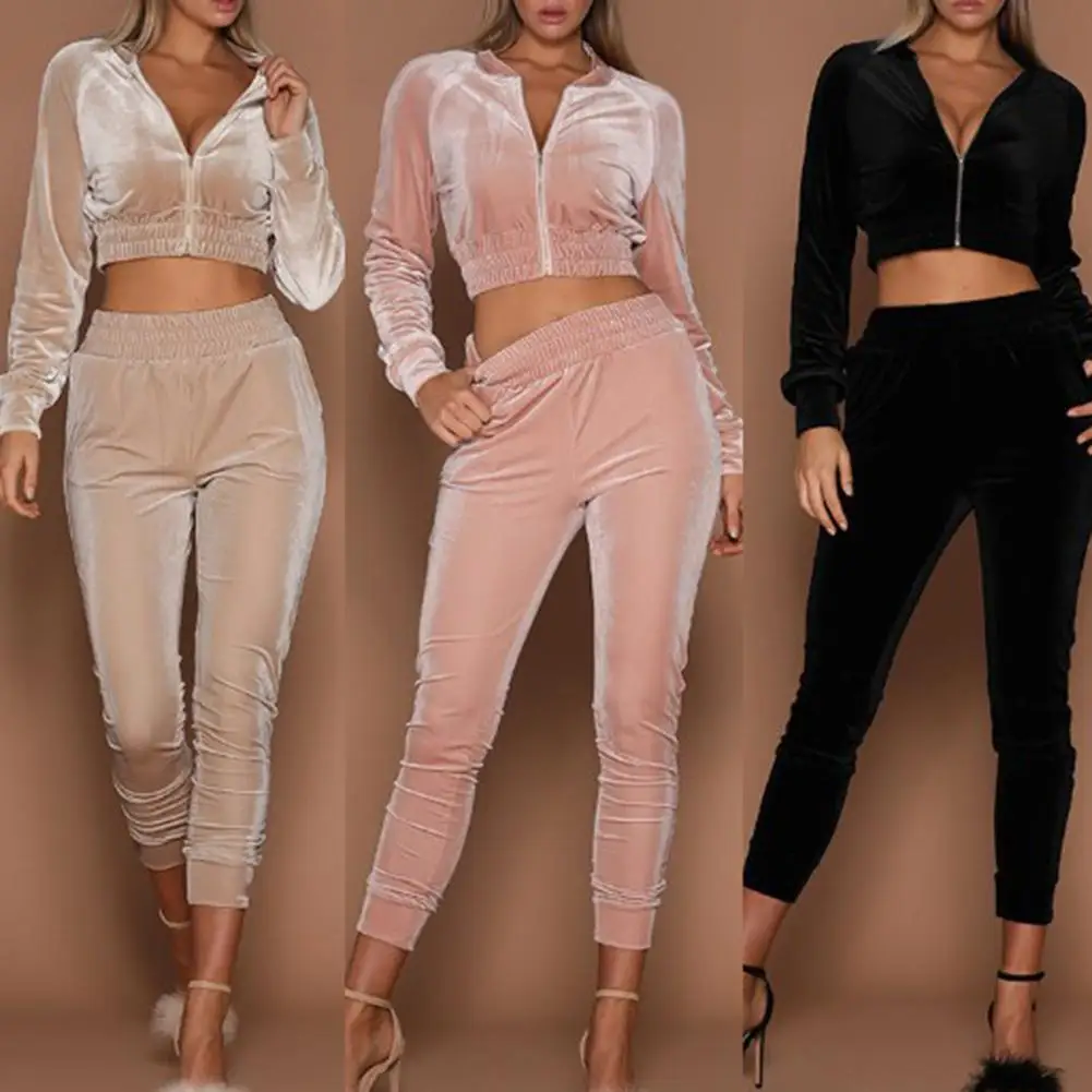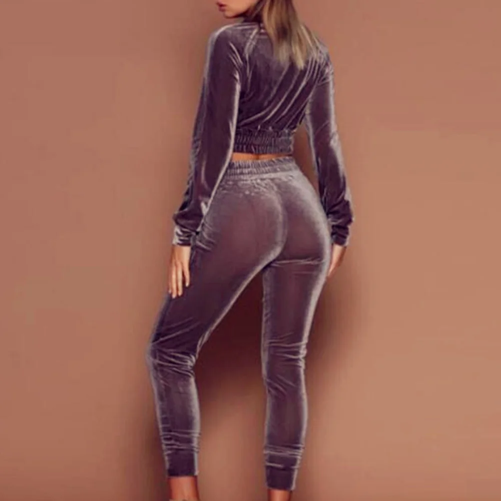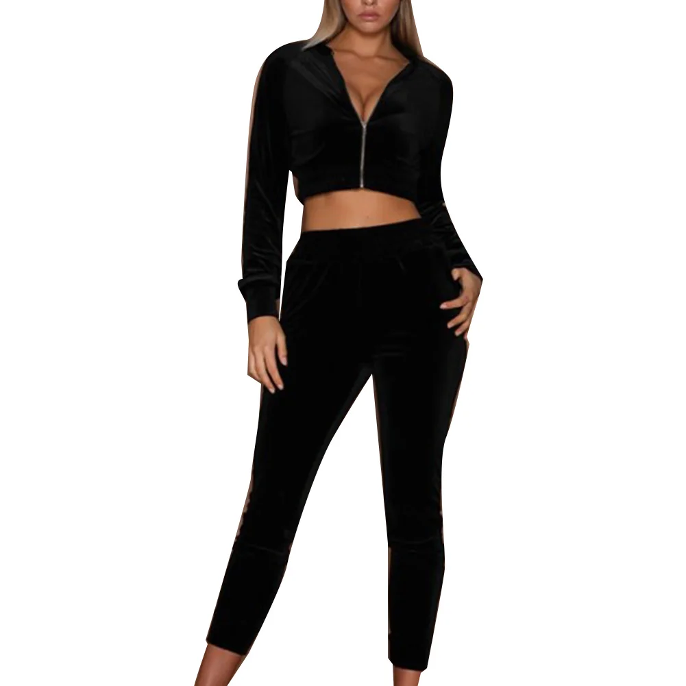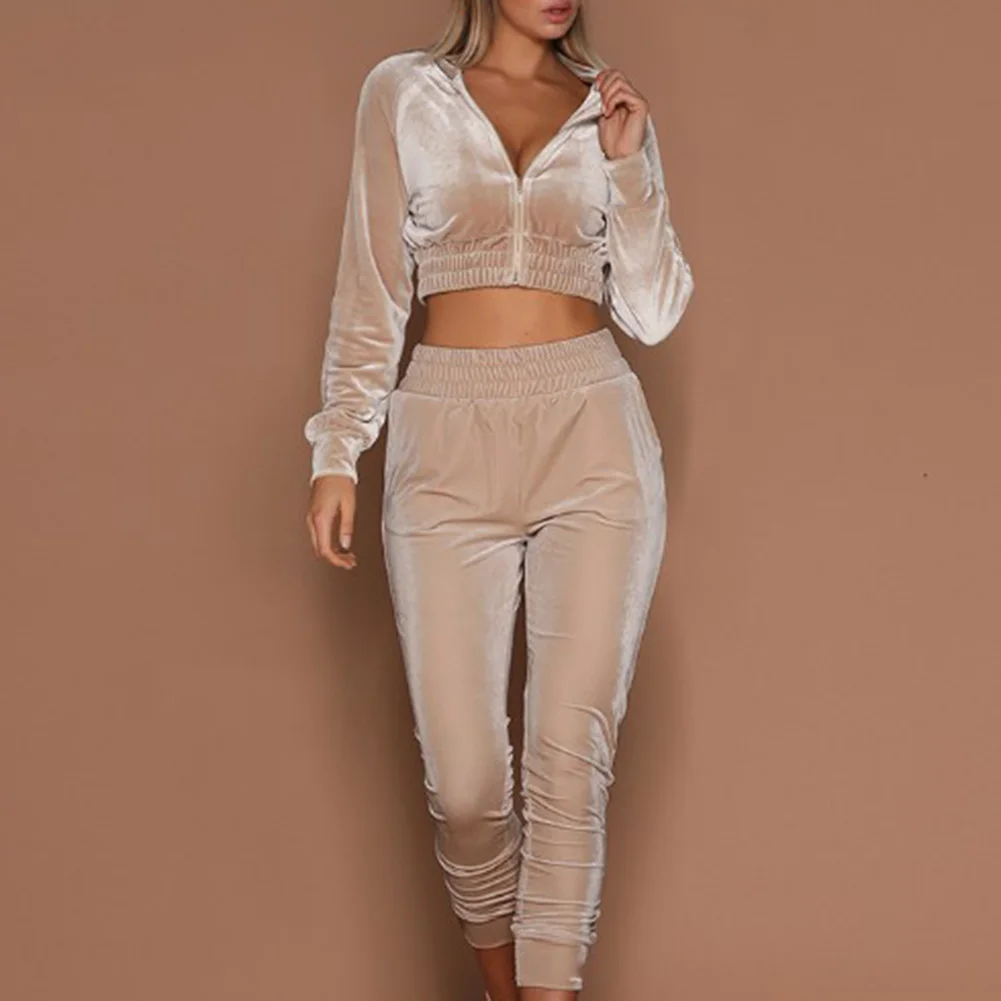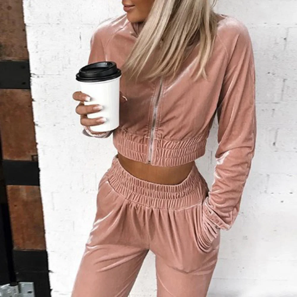 Женский спортивный костюм на молнии, комплект из двух предметов, Толстовка и штаны, повседневный свободный Бархатный спортивный костюм для бега, спортивный костюм