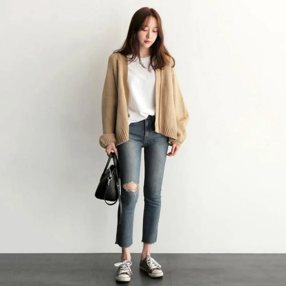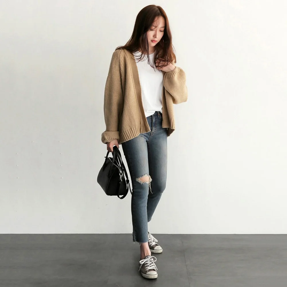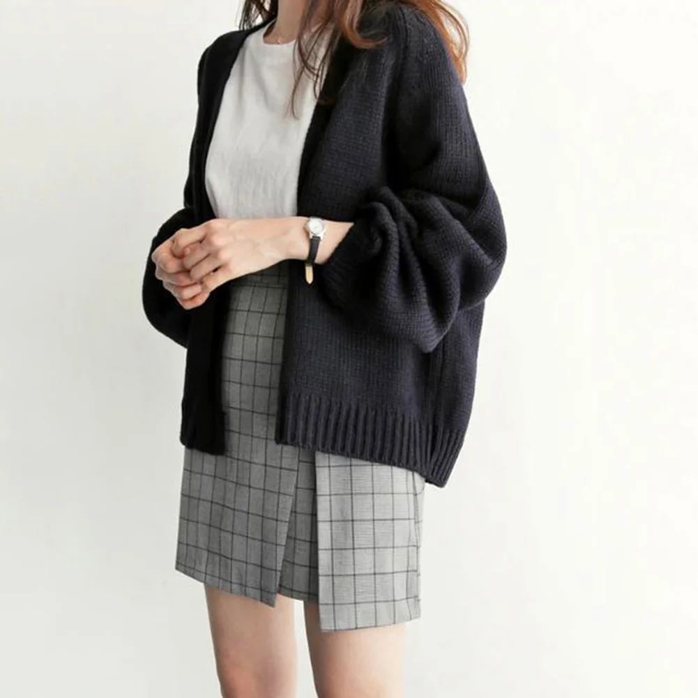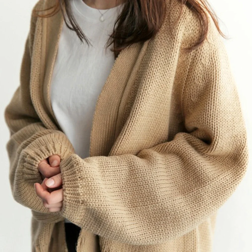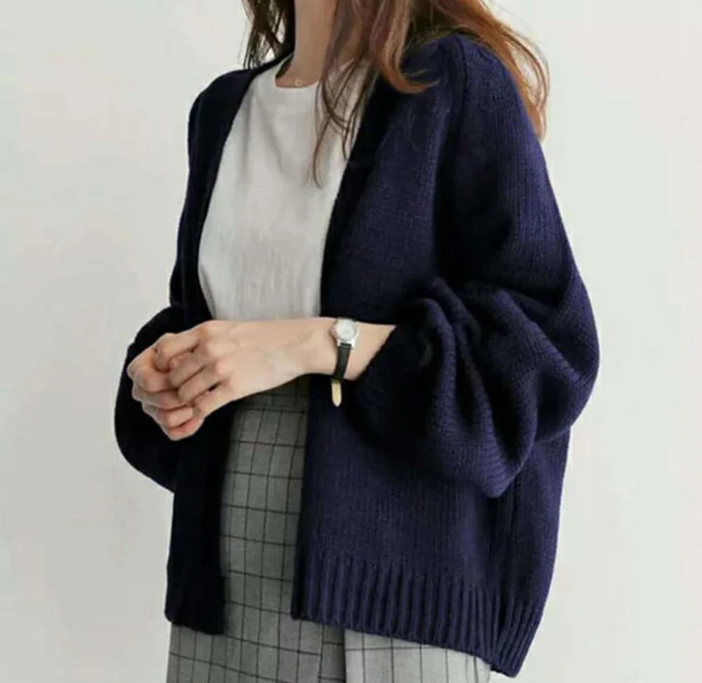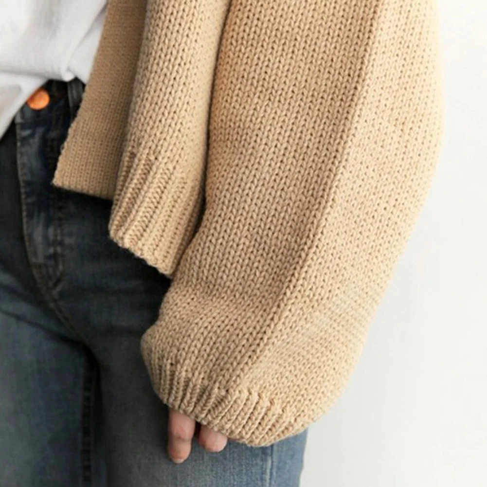 Женский зимний теплый повседневный свободный однотонный короткий вязаный кардиган, свитер, пальто