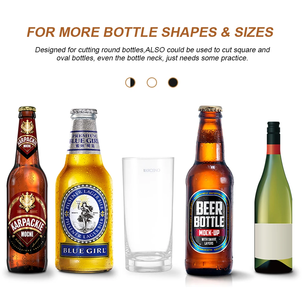 Простота в использовании: Положите бутылку на резак для бутылок, установите постоянное среднее давление и поверните стеклянную бутылку