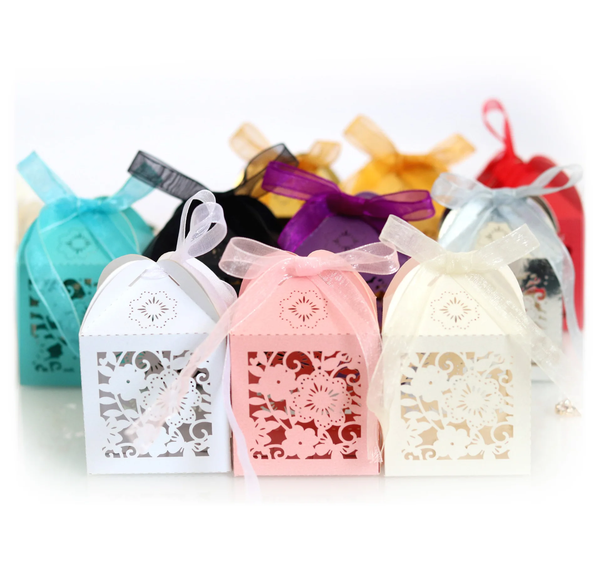 Свадебные сувениры для гостей Подарочная коробка для двери лазерная резка полые Филигрань Дизайн День рождения партии шоколада пакет