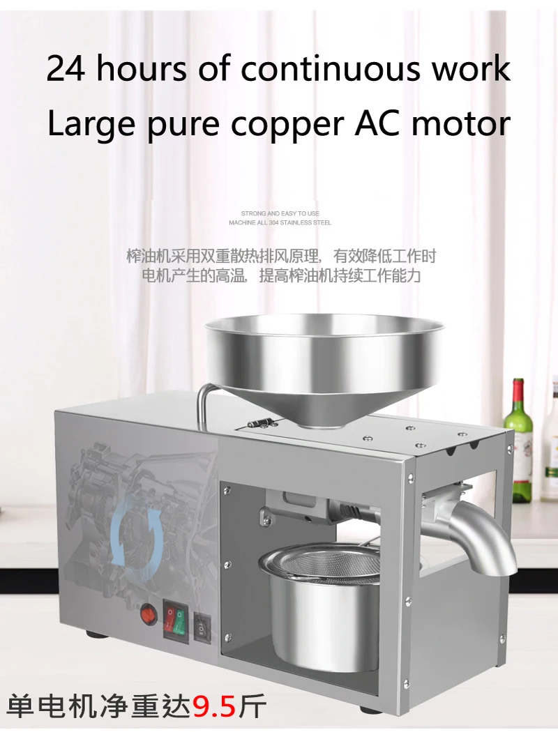 1. Электрический маслоотделитель, подарите себе здоровье и питательную жизнь. 2. Материал из высококачественной нержавеющей стали, устойчив к коррозии и прочен. 3. Полные аксессуары, простые в установке. Низкий уровень шума и долгая работа, длительный срок службы и простота в обслуживании 4. подходит для большинства масел, содержание которых составляет более 25% масел, таких как арахиса, подсолнечника, семян чая, кунжута, грецкого ореха, оливы, кокосового масла, льна, и т. д. 5 .. Несколько способов прессования для удовлетворения различных требований к прессованию семян. Скорость экстракта масла и подходит для многих видов семян 6. Основные компоненты масла, такие как белок и многие полезные микро-элементы тела остаются в остальном материале-это дефатированный ореховый порошок, 7. Энергосбережение и экономия труда