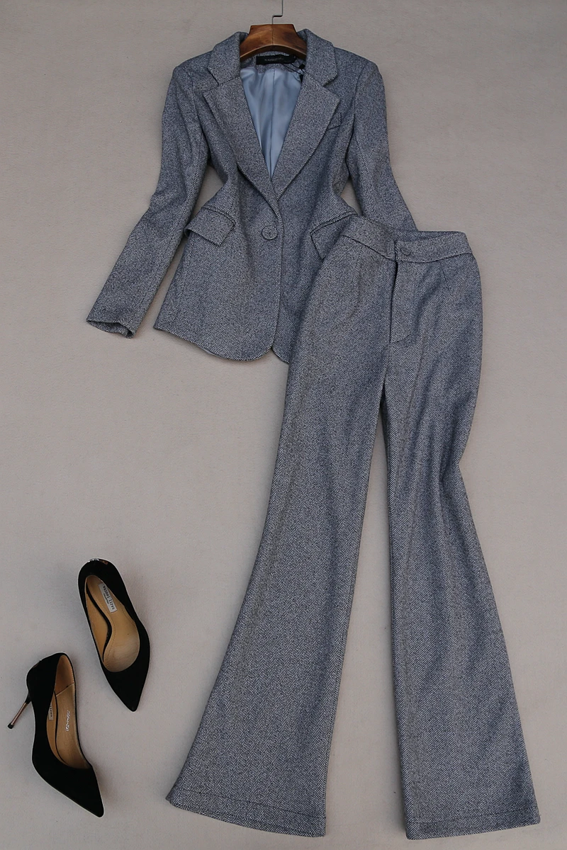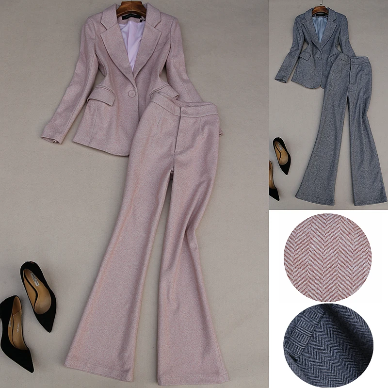 Женская офисная обувь; Костюм новые модные костюм темперамент Тонкий шерстяной костюм с узором «елочка» расклешенные штаны Высокое брюки с высокой талией комплект из 2 предметов для женщин