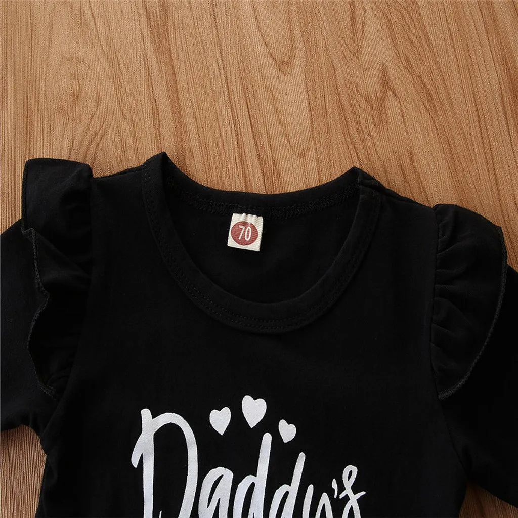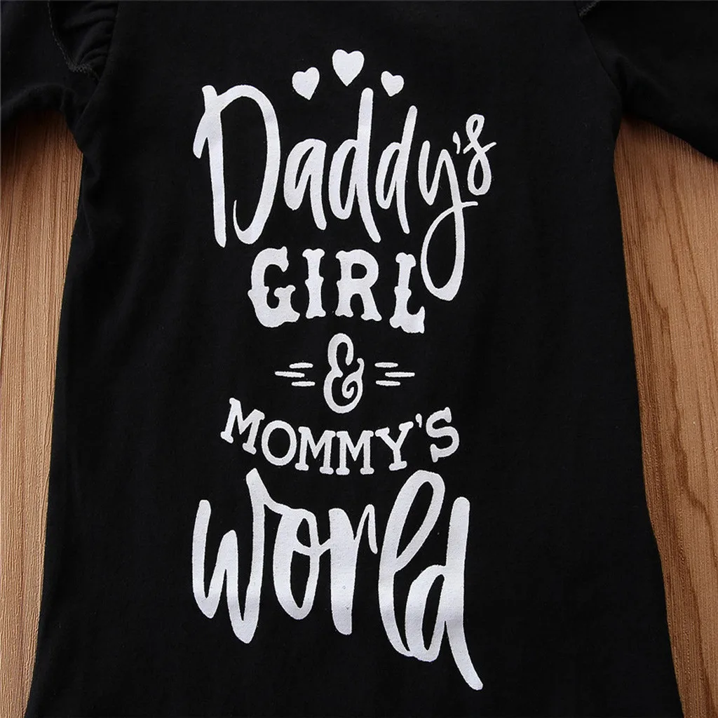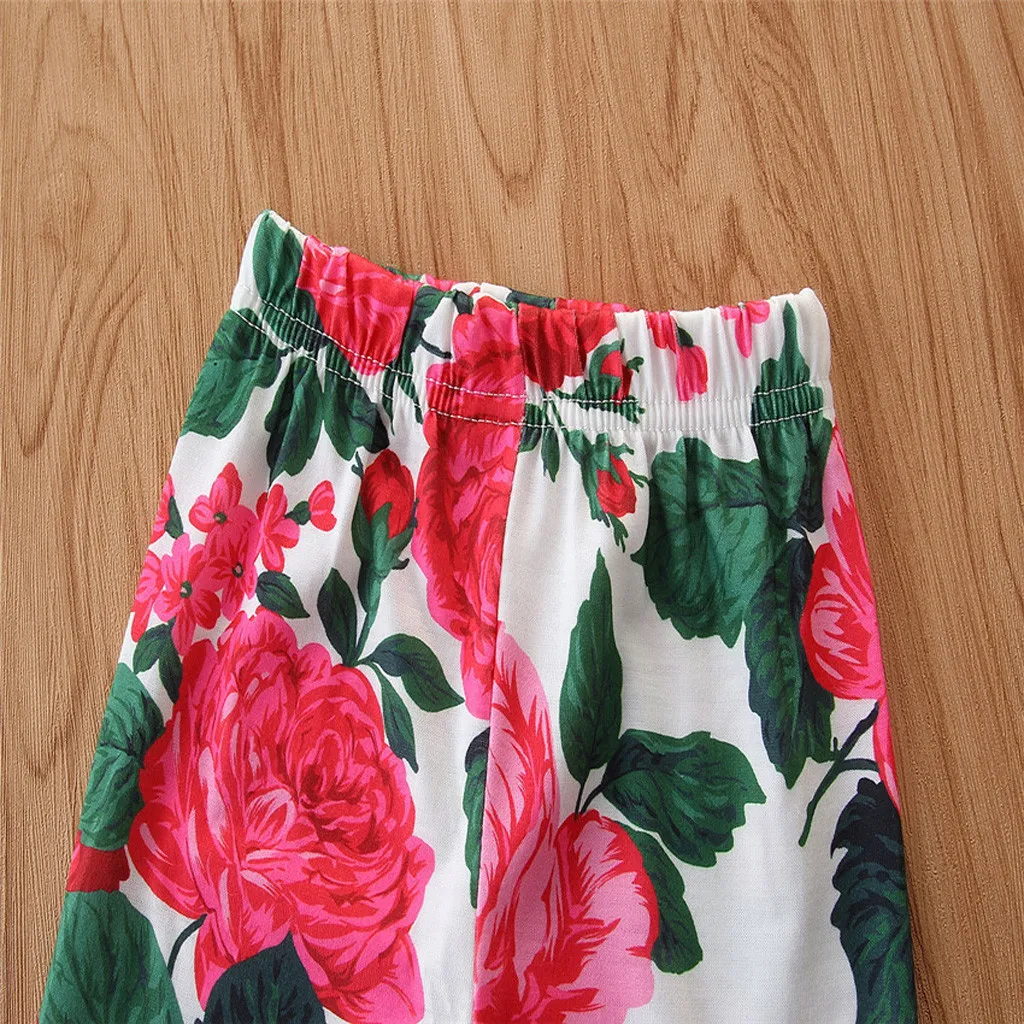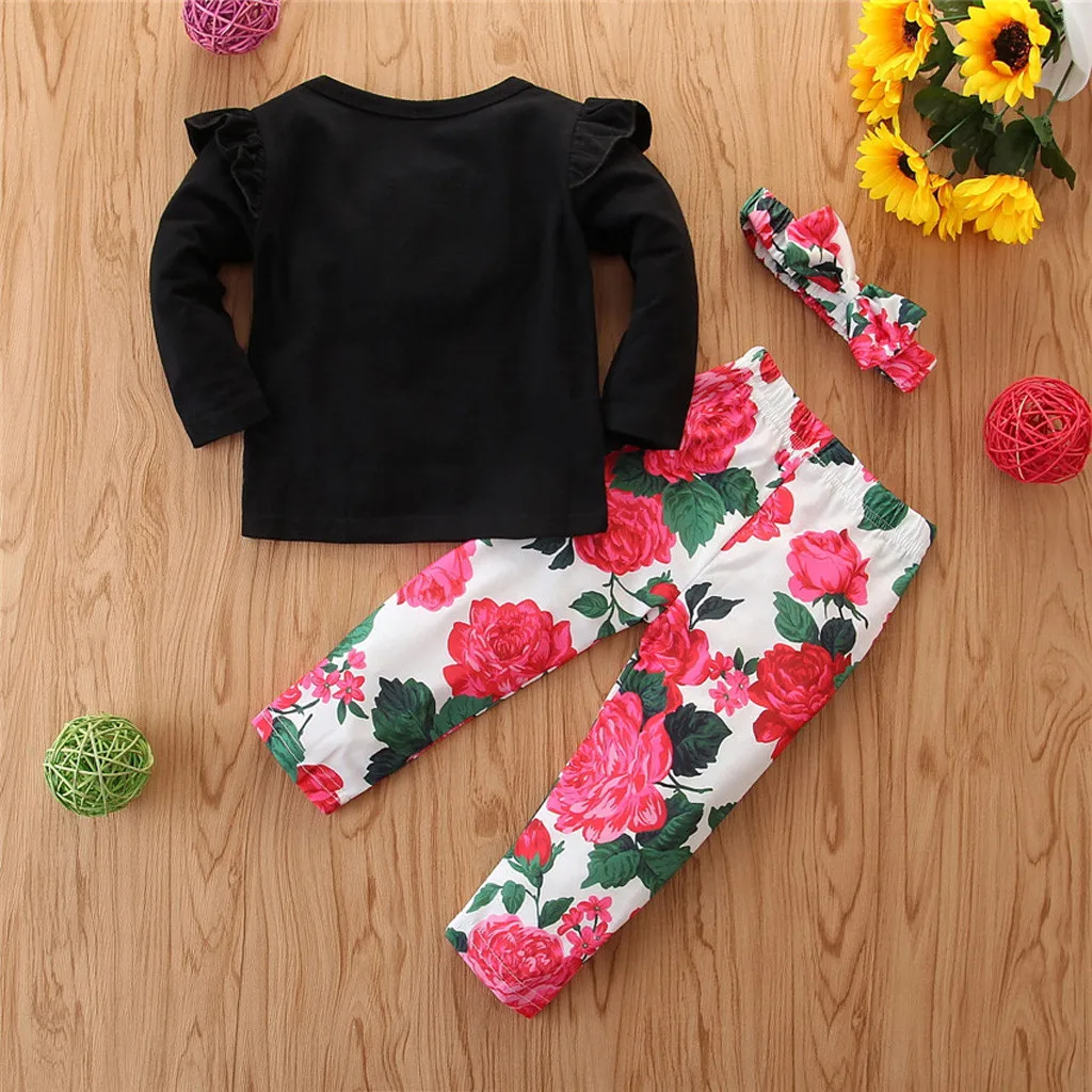 Футболка с надписью для маленьких девочек Топы + штаны с цветочным принтом + повязка на голову