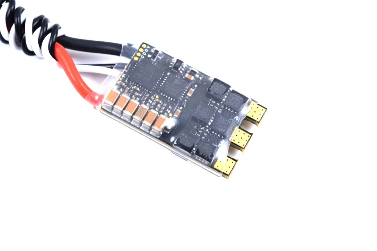 Параметры: Название товара: 50A ESC встроенный СВЕТОДИОДНЫЙ MCU: STM32F051 Встроенное программное обеспечение: BLHeli_32 бит Ток: 50A Размер: 26x16x5 мм Вес: 6,5 г Входное напряжение: 3-6 ячеек liPo PCB: 3 унции медь, позолоченный Встроенный светодиодный, переключаемый цвет (красный, зеленый, синий, желтый, белый, пурпурный, сине-зеленый) Особенности: -Поддержка Dshot 1200 по умолчанию с завода -Также поддержка Oneshot42, Oneshot125, Multishot, Dshot150, Dshot300 и Dshot600 -Ультра светильник и Ультра маленький ESC-цвет RGB светодиодный может быть установлен blheliлюкс. -Мощность ed высокой производительности STM32 MCU частоты до t0 48 МГц-состоит из 3 унций позолоченной печатной платы-прошит с последней прошивкой BLheli32-поддерживает более высокий мотор кВ и большую нагрузку на электроэнергию, больше подходит для бурного полета гоночного дрона. -Алюминиевый радиатор эффективно замедляет повышение температуры. Алюминиевый радиатор