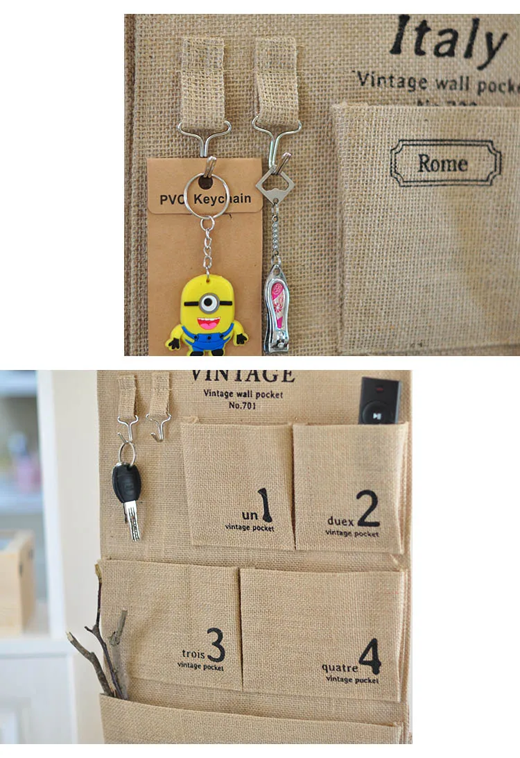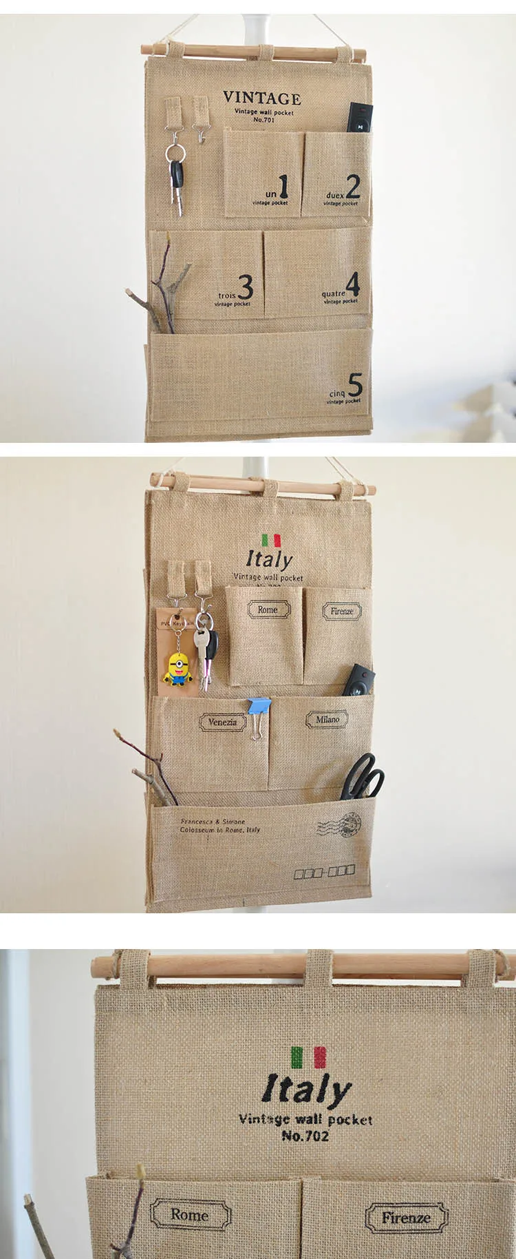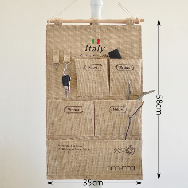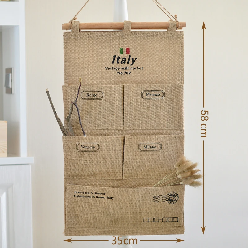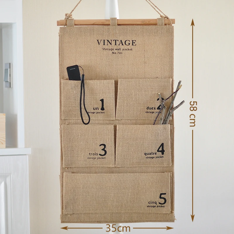 Висячая сумка для хранения на стене, складной холст, 5 ячеек, карман на дверь, для ванной комнаты, спальни, держатель для мелочей, органайзер, сумка из джута