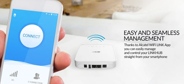 Alcatel Работает с любым оператором, Linkhub HH70 Cat7 маршрутизатор может поддерживать до 64 Wi-Fi устройств одновременно на двухдиапазонный Wi-Fi (2,4 ГГц и 5 ГГц). Благодаря приложению Alcatel WiFi Link пользователи могут легко управлять и управлять Linkhub прямо со смартфонов. LinkHub HH70 является лучшим решением для небольших офисов, частых домашних моторов и второго дома.