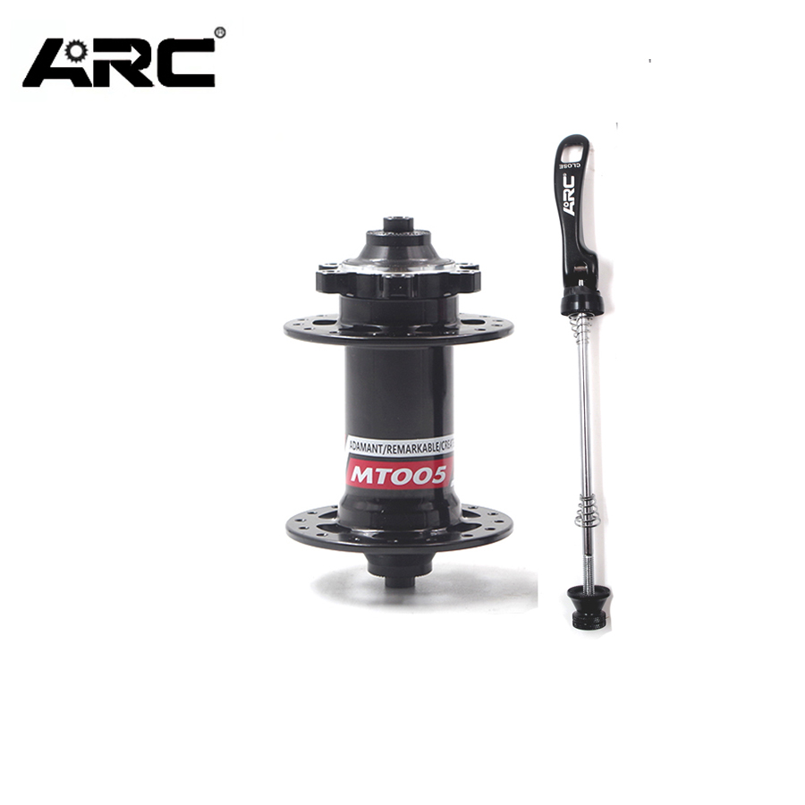 ARC MT005F концентратор горного велосипеда, материал корпуса ступицы AL6061-T6 алюминия. Передняя втулка MT005F имеет 2 подшипника NBK, старая-100 мм, MT005F совместима с Shimano 8-11 скоростной groupset, фланец-32 отверстия, подходящие для 14G J поворотных велосипедных спиц.