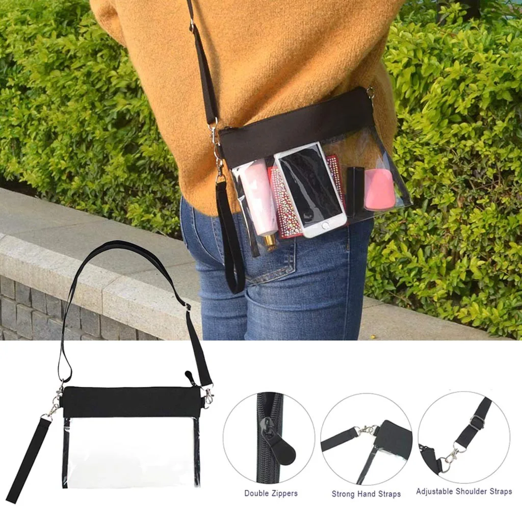 Описание продукта: Прозрачная вместительная сумка: Материал: ПВХ Достаточно большой, чтобы держать лосьон для загара, бумажник, ключи, сотовый телефон, iPad, камера, солнцезащитные очки, карты, наличные и многое другое, и все сразу. Материал: плотный нейлон. Используйте этот плечевой ремень, прозрачная сумка может быть плечевым кошельком Застежка-молния: Отделение открывается и закрывается на молнию. Храните ваши вещи в безопасности. Экономьте время, чтобы найти свой мобильный телефон или ключи. Пройдите через систему безопасности, используя прозрачная вместительная сумка и избегайте отклонения в ворота или двери. Подходит для девочек и женщин. Идеально подходит как тренажерный зал, туалетные принадлежности, косметика, пляж, продуктовые товары, путешествия, работы и товары для рукоделия сумка. Посылка включает: 1 шт. прозрачная сумка через плечо
