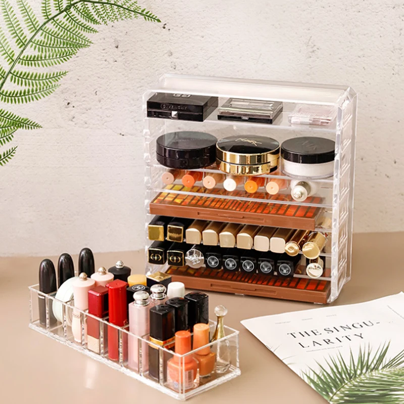 1. Уникальный дизайн, помогает организовать все виды косметики, включая помаду, порошок, тени для век и т. Д. Экономит больше места на рабочем столе и делает его аккуратным. Плата между каждой сеткой съемная;