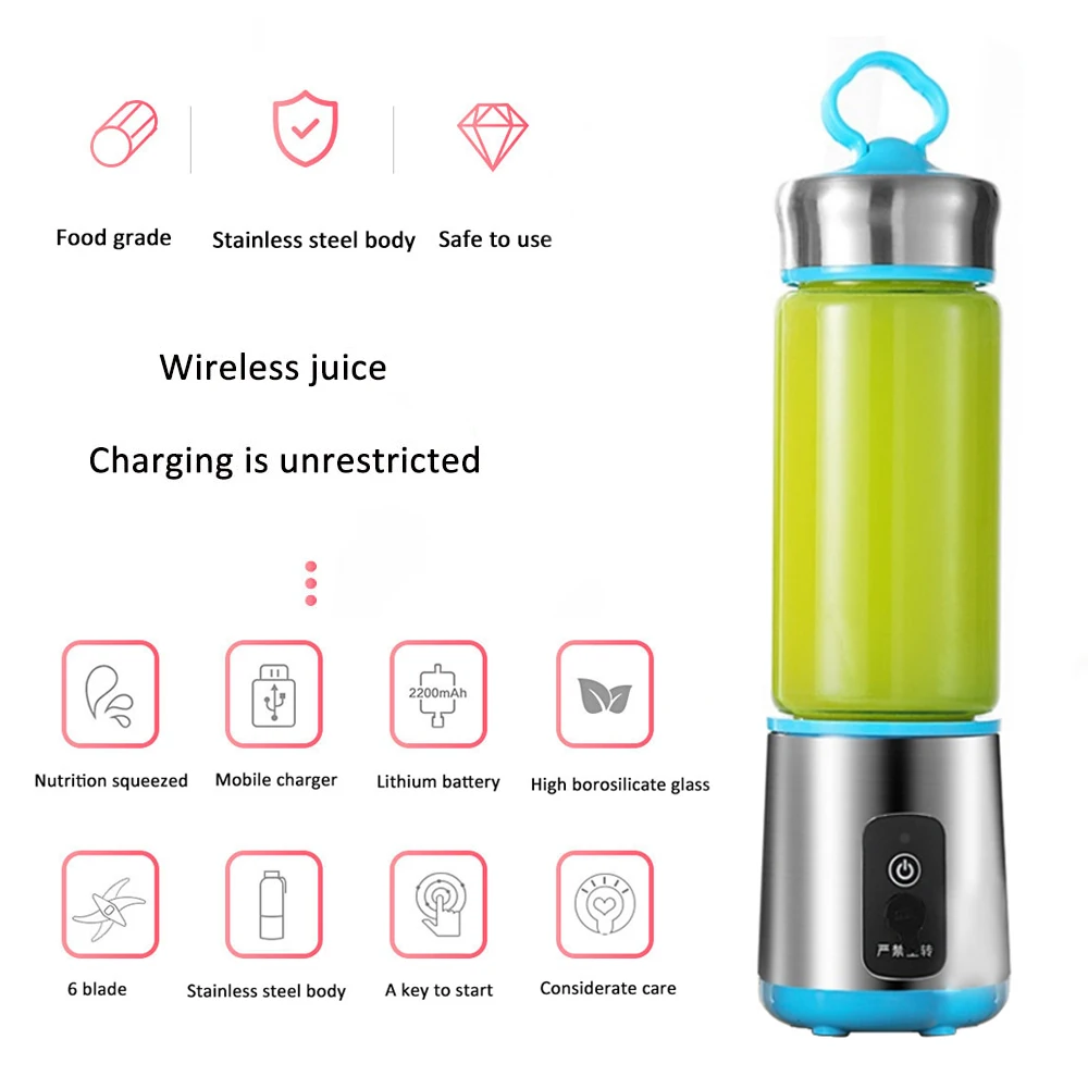 380 мл портативная электрическая многофункциональная чашка для сока умная Беспроводная USB Зарядка 6 лезвий миксер фруктовый миксер
