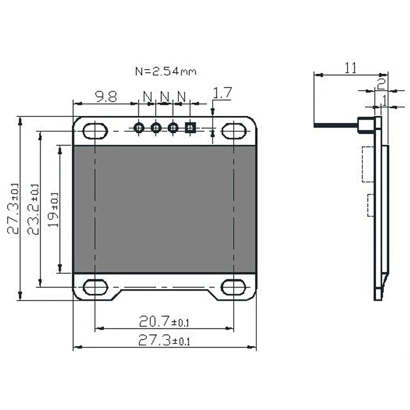 Разрешение: 128X64 Цвет: синий Угол обзора: более 160 градусов Поддерживаемые платформы: для arduino, серии 51, серии MSP430, STIM32 / 2, чипы SCR Низкое энергопотребление: 0,04 Вт во время нормальной работы Поддержка широкий диапазон напряжения: 3,3 V-5V DC Рабочая температура: -30-80 градусов Объем: 27 мм * 27 мм * 4,1 мм Драйвер IC: SSD1306 Коммуникация: IIC, только два порта ввода/вывода Нет шрифта: Программное обеспечение принимает слово modulo Задняя светильник: дисплей на органических светодиодах (OLED) Самостоятельная светильник, без спинки светильник Интерфейс: VCC: 3,3-5V Заземление: заземления SCL: серийные часы Внесение изменений: последовательной передачи данных