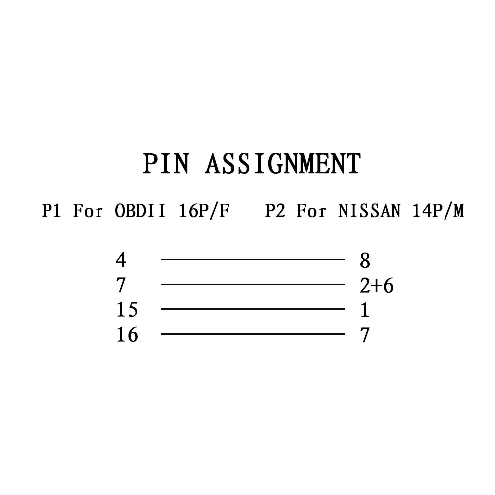 Длина кабеля: 25 см (не включает ручки любого конца) Параметры: 1. Это совершенно новый кабель передачи данных, используемый специально для подключения вашего OBD2 сканера и вашего автомобиля с этим 14-контактным разъемом, который специально для Nissan. 2. Работает на 14PIN для Nissan старого автомобиля