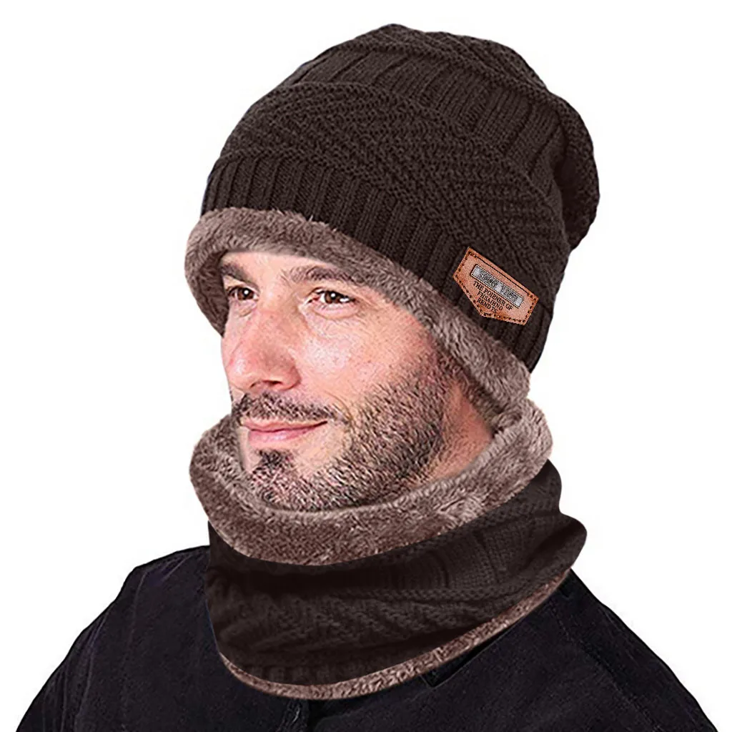 DescriptionМужская теплая зимняя шапка и шарф из двух частей, вязаная ветрозащитная шапка