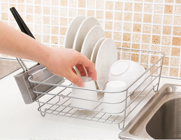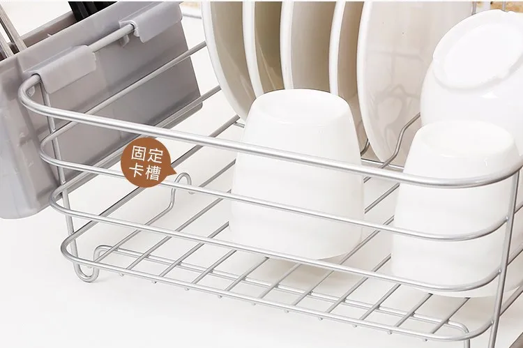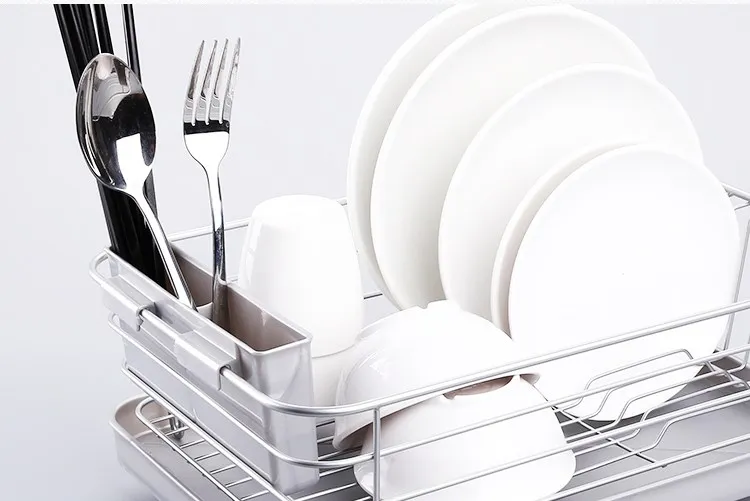 1. Сушилка для посуды изготовлена из железа и порошка с покрытием, который не так легко ржаветь. 2. Этот вид дизайна очень подходит для всех тарелок-органайзеров. В нем можно хранить более 10 шт. тарелок и других столовых приборов. 3. Есть трубка, соединяющаяся с раковиной, очень удобно.