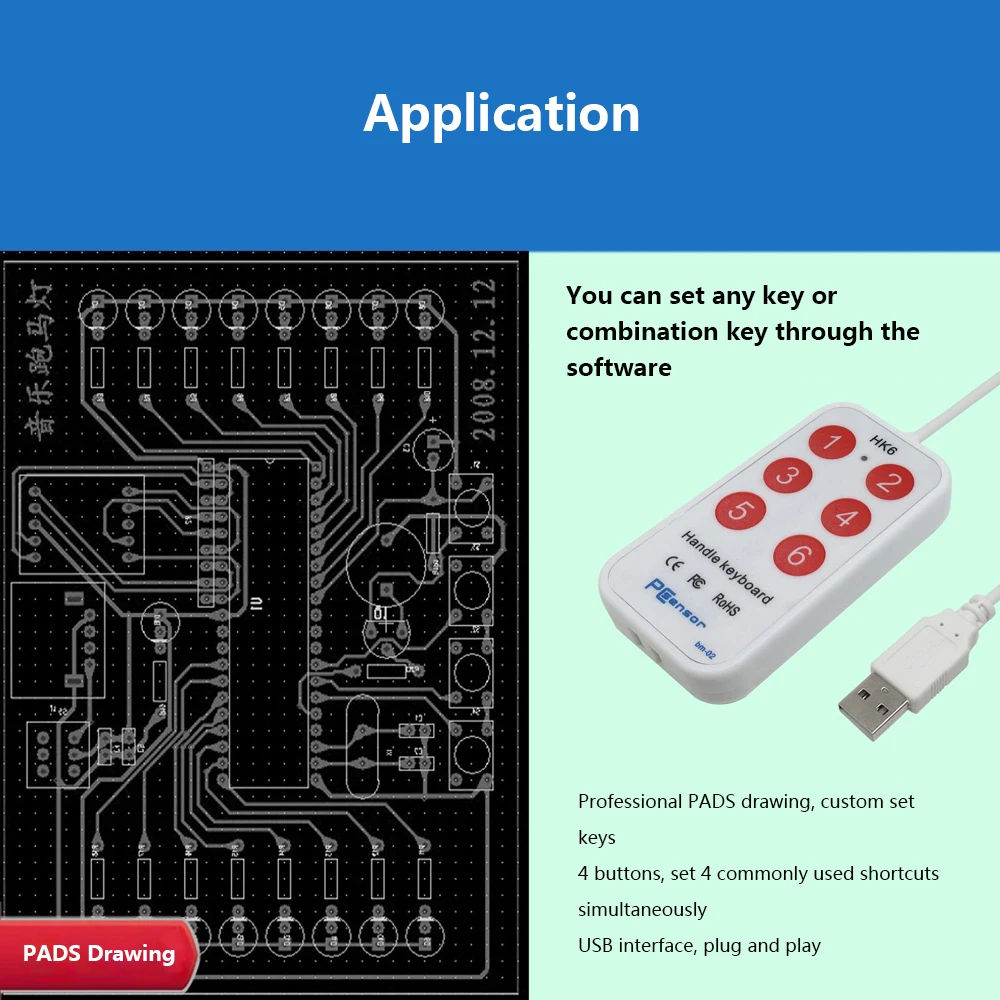 Это usb-клавиатура с ручкой. 6 кнопок дизайна, поддерживает Пользовательские настройки кнопок. Настройка 6 коротких клавиш, usb-интерфейс, подключи и работай, удобный и быстрый в использовании. Широко используется в играх, контролирующих инструментах, приобретении изображений, мультимедийном обучении, станции профилактики и т. д.