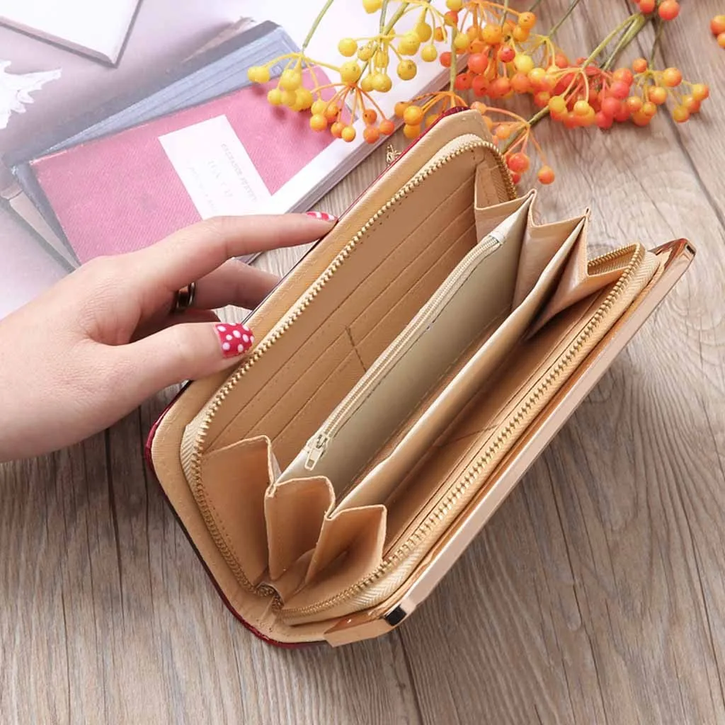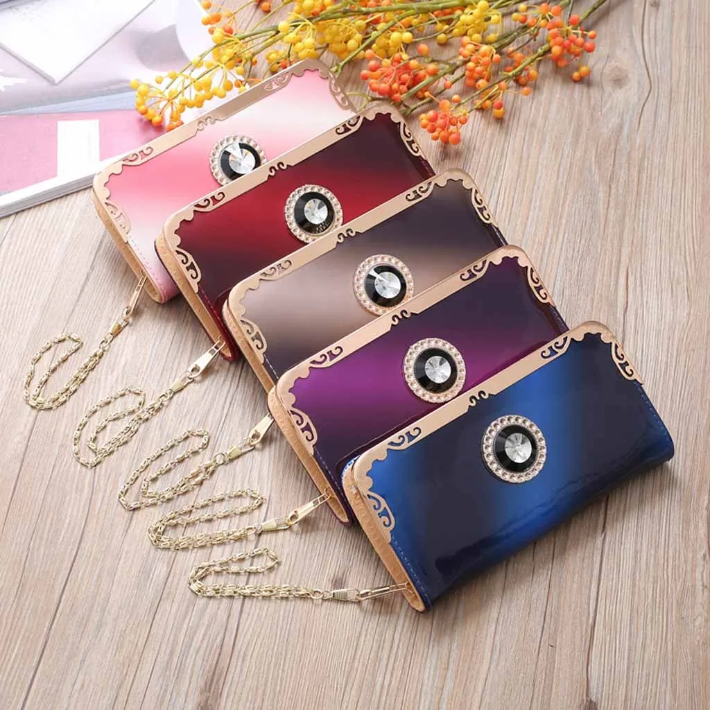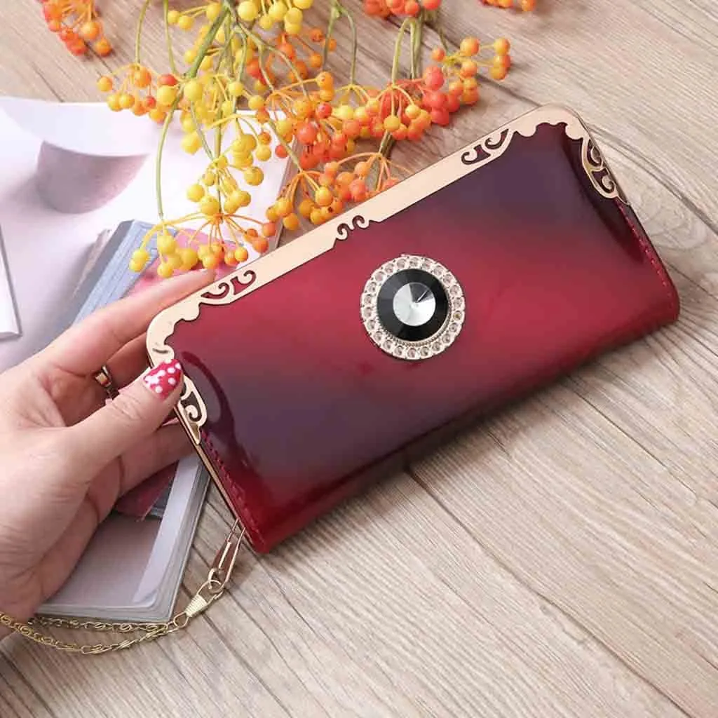 Модная женская длинная сумка из лакированной кожи с градиентом цвета Радужный кошелек клатч кошелек
