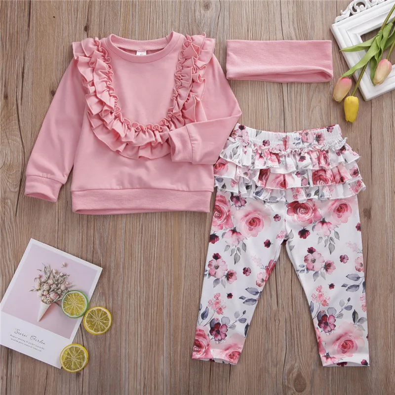 Топы с оборками и штаны с цветочным принтом для новорожденных девочек!