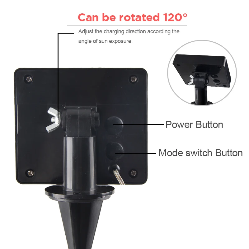 Солнечной батареи: 2 V/160MA (Размеры 65*50 мм)Встроенный аккумулятор: 1.2V1800MA * 1